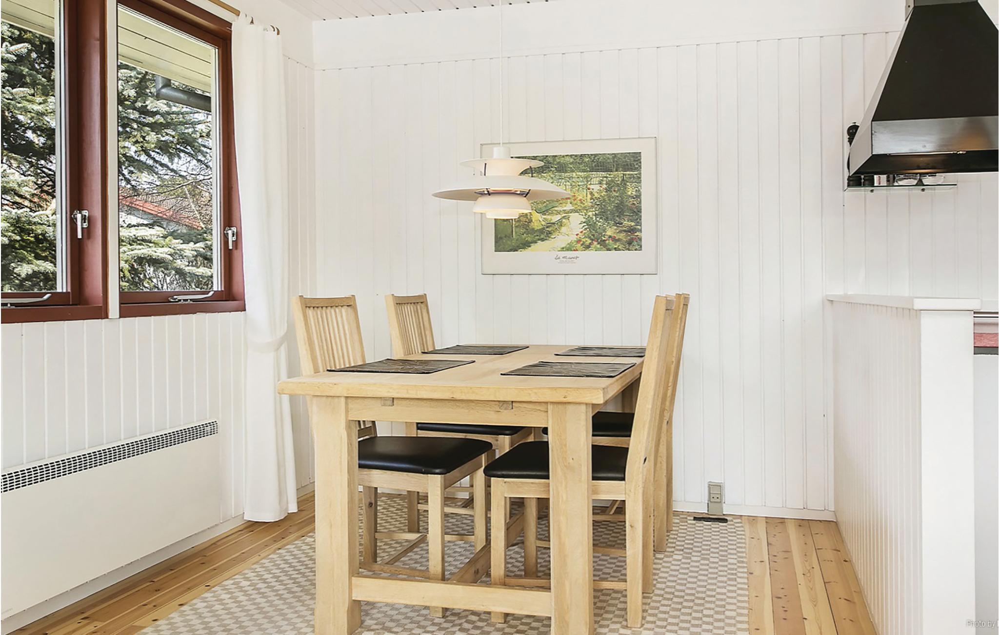Gemütliches, klassisch eingerichtetes Ferienhaus in Dronningmølle, das sich auf Nordseeland befindet. Das Haus wurde mit Holz gebaut, sein grüner Garten wird von einer Hecke umgeben. Es sind also optimale Verhältnisse, einen entspannungsreichen Urlaub in ungestörter Ungebung zu verbringen, vorhanden. Das Interieur ist hell und modern, für den klassischen Wohlfühlelement spricht der Kaminofen, vor dem es extra behaglich ist.