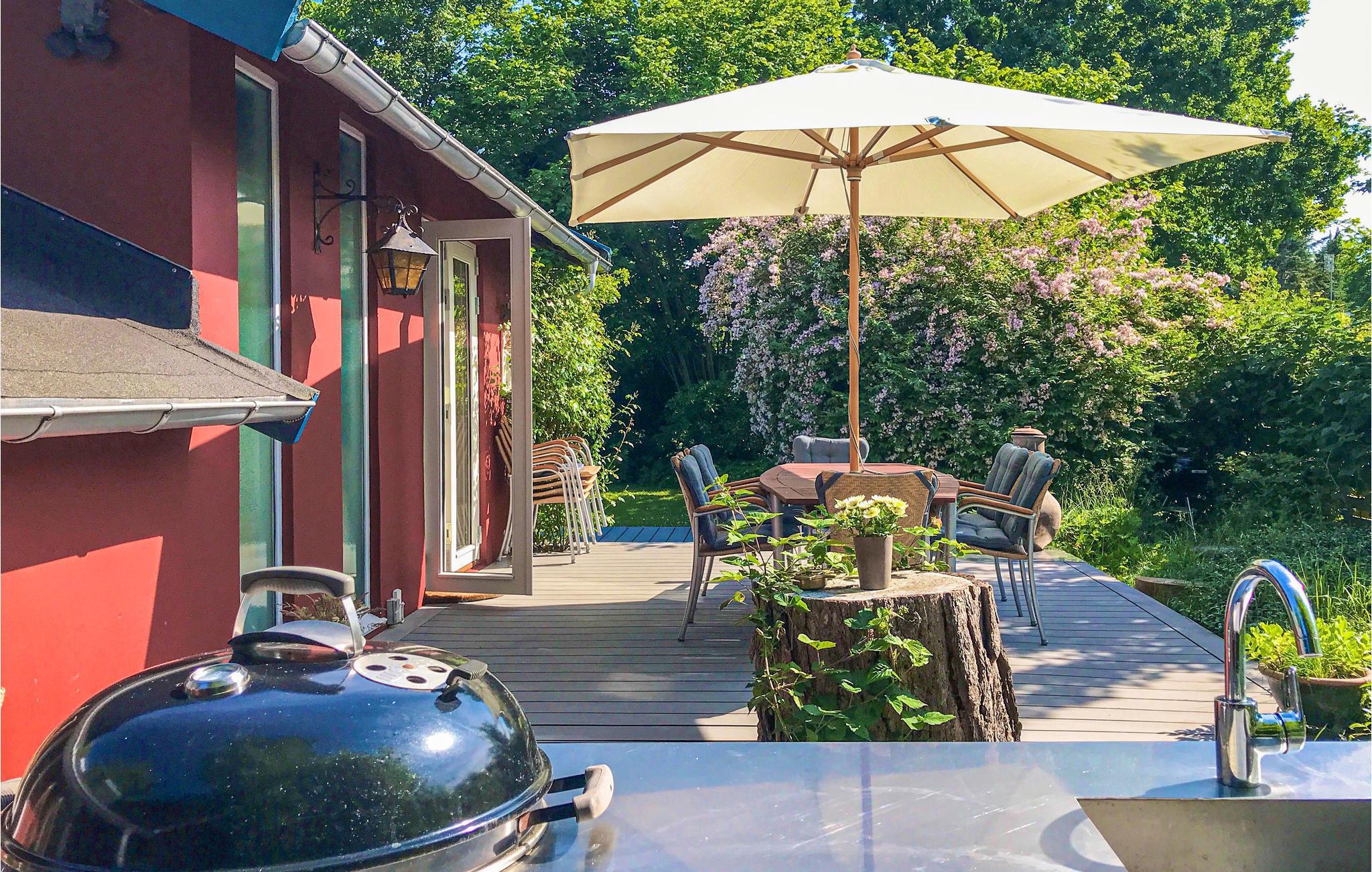 In der sehr attraktiven Stadt Dronningmølle befindet sich dieses charmante Ferienhaus auf einem wunderschönen Naturgrundstück. Das Haus hat mehrere gemütliche Ecken. Im Wohnzimmer gibt es einen Essbereich. Die 2 Schlafzimmer des Hauses bieten Platz für 5 Personen, außerdem gibt es einen Dachboden (mit einer steilen Leiter), auf dem die Kinder garantiert Spaß haben werden. Im Haus gibt es nicht weniger als 2 Holzöfen, die zur gemütlichen Atmosphäre beitragen. Vom Wohnzimmer aus haben Sie Zugang zur schönen Terrasse mit Grill und Außenküche, auf der Sie wundervolle Urlaubsgerichte zubereiten können. Da das Badezimmer nicht groß ist, können Sie die Außendusche nutzen. Absolut perfekt, wenn Sie vom Strand nach Hause kommen und schnell den Sand abspülen möchten. Vom Haus sind es nur 10 Minuten zu Fuß zum schönen Strand mit flachem Badewasser.