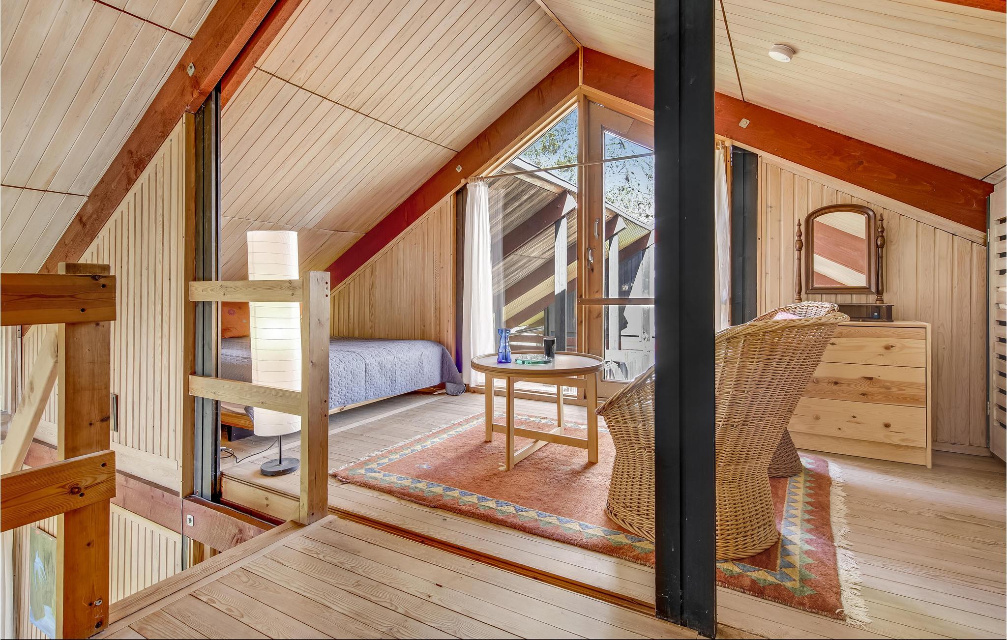 Ein markantes Holzhaus mit besonderer Architektur und einem heimeligen Ambiente.