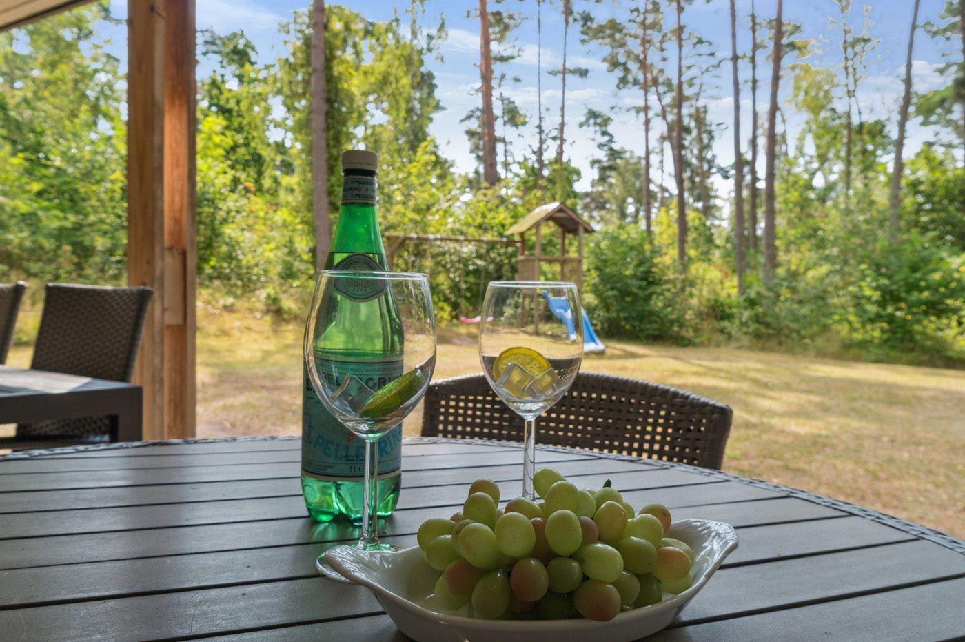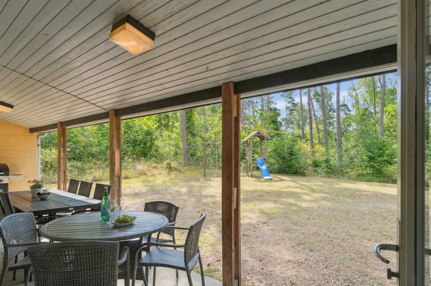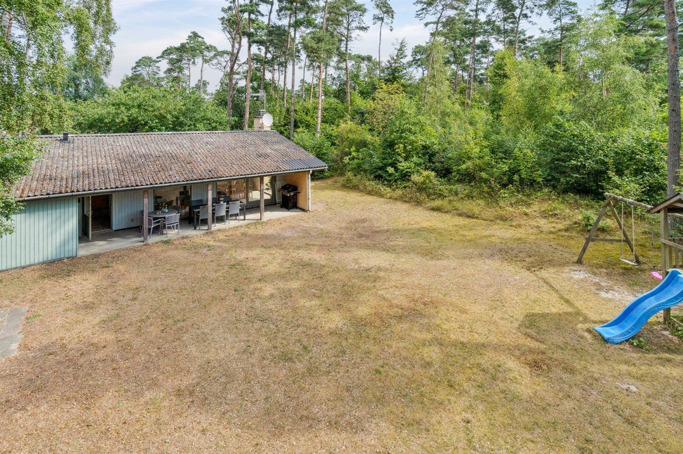 The holiday home is situated on a 1000 m² natural site. Situated 800 m from the sea. Nearest shop is 4000 m away. You will find a golf course in a distance of 1500 m. A terrace belong to the holiday home. Furthermore the house has a covered terrace. Swing. Play tower. Slide. Barbecue at your disposal. Parking place by the holiday home.