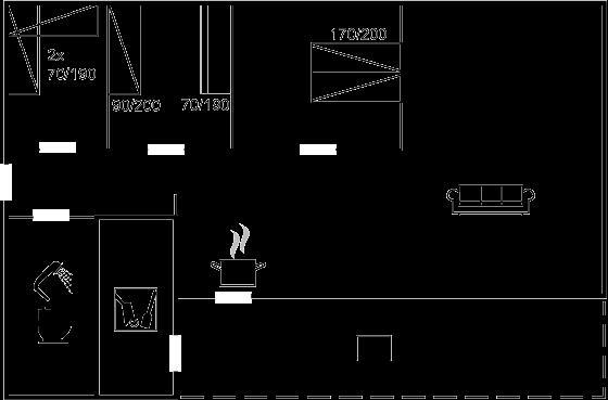 All together there are 3 bedrooms. The beds are divided on: 2 sleeping places in double bed. 1 sleeping place in single bed. 4 sleeping places in bunk beds.