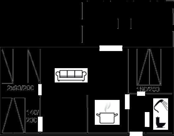 All together there are 3 bedrooms. The beds are divided on: 4 sleeping places in double beds. 2 sleeping places in single beds. Moreover 1 cot for a baby (0-3 years).