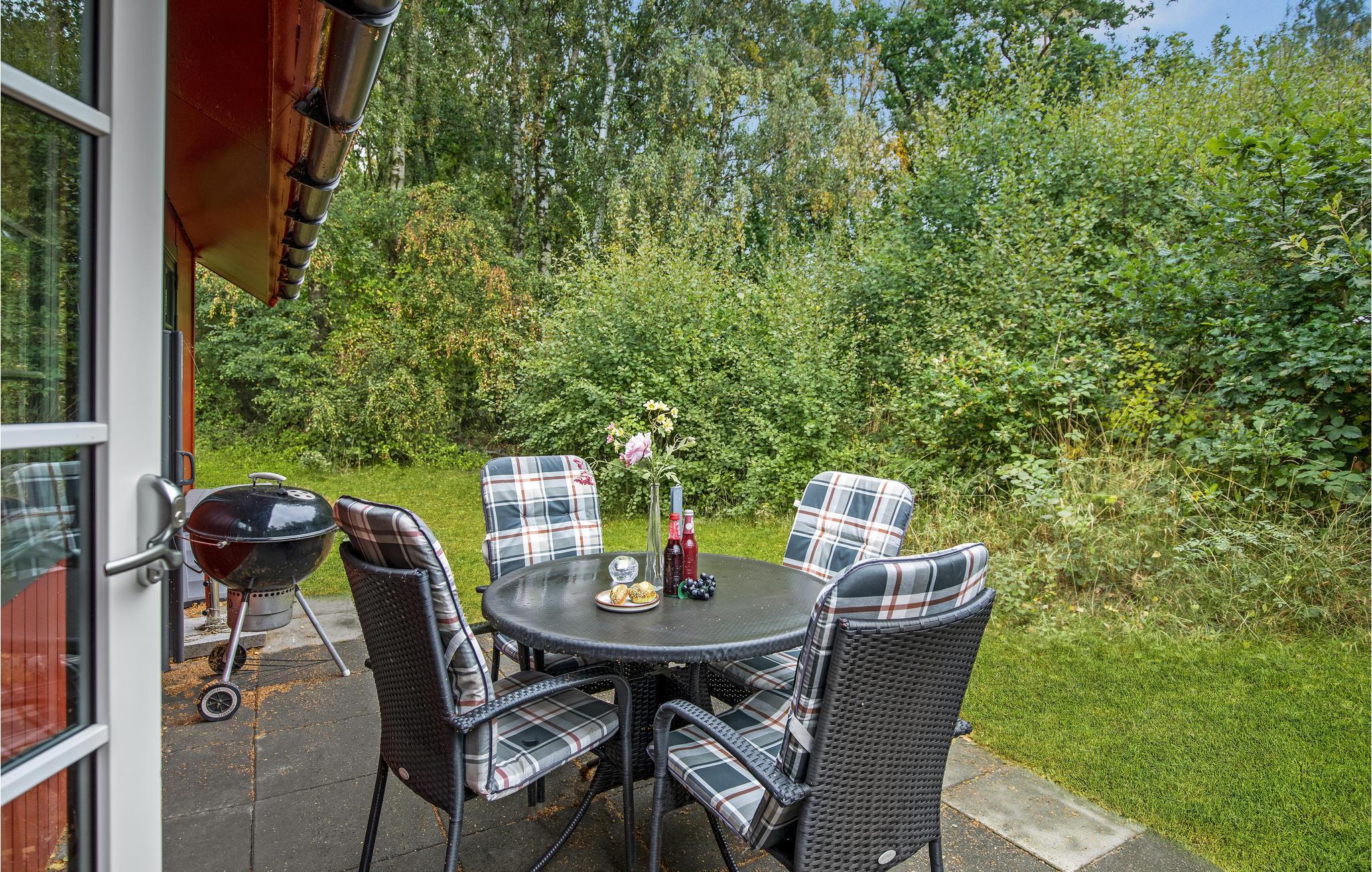 Beziehen Sie mit Ihrer Familie dieses kompakte Holzferienhaus in schwedenrot. Das gemütliche Haus bietet Ihnen eine schöne Atmosphäre und einen Kamin zum Wärmen. Die sichtgeschützten Terrassen bieten je nach Tageszeit Sonne, Entspannung und einen schönen Platz Ihre Mahlzeiten einzunehmen.