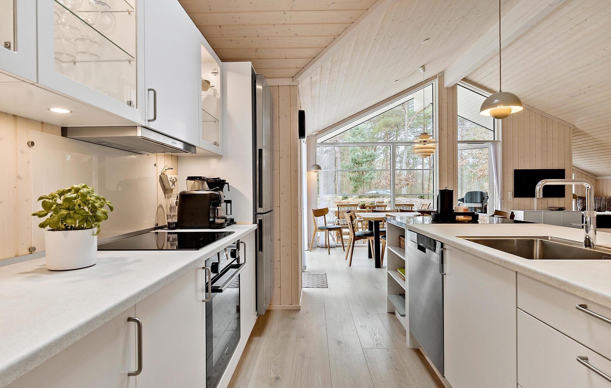 Dieses einladende Ferienhaus heißt Sie im Süden der Insel Bornholm willkommen und verspricht Ihnen dank der komfortablen Einrichtung und hellen Atmosphäre einen erholsamen Urlaub. Kommen Sie im lichtdurchfluteten Wohnraum zusammen, kochen, essen und spielen in dem großen und offenen Raum, der die ganze Familie zusammenbringt. Der Komfort und die schöne Einrichtung lassen dabei keine Wünsche offen. Entspannung finden Sie beim Buchlesen neben dem Holzofen oder beim Wellnessprogramm in der Whirlpool-Badewanne oder in der Sauna.