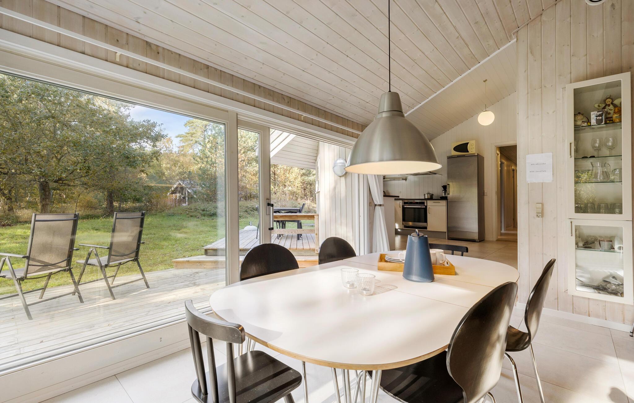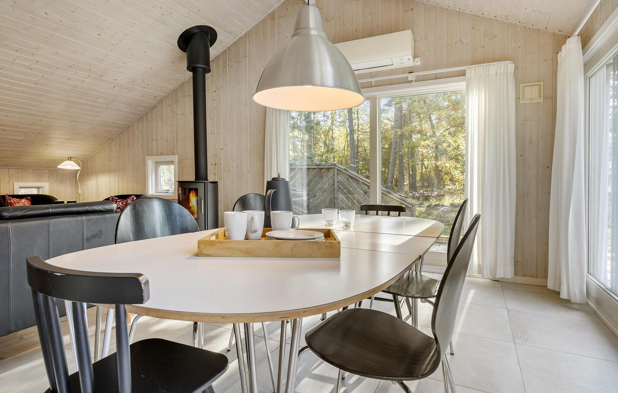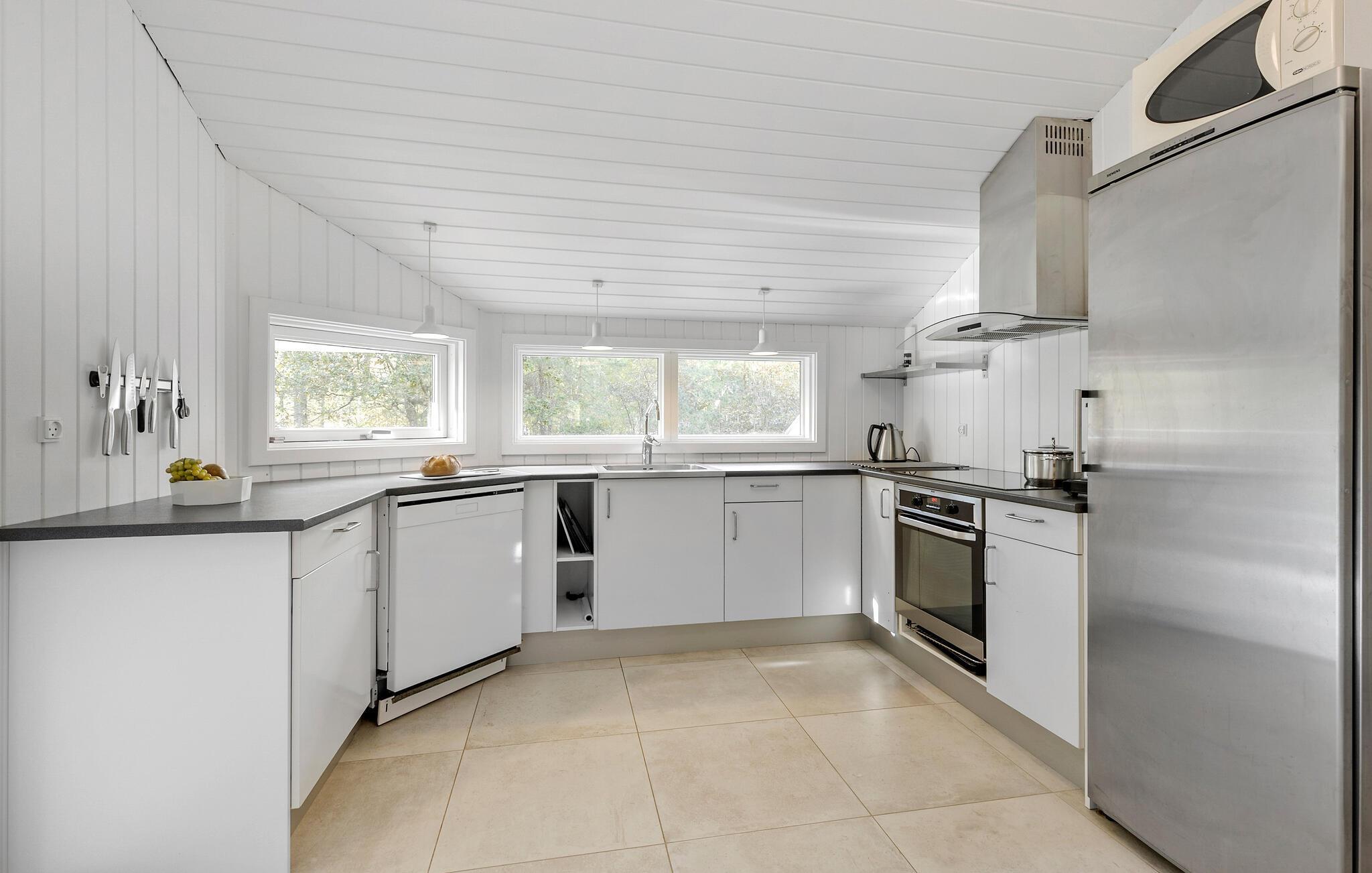 Ihr gemütliches Ferienhaus in Dueodde bietet Ihnen den Komfort, den Sie für einen gelungenen Urlaub brauchen. Beginnen Sie Ihren Tag mit einem Frühstück auf der Terrasse und genießen Sie den Blick in den eigenen Garten, der viel Platz zum Entspannen und Erholen bietet. Der helle Wohnbereich lädt nach einem aktiven Tag dazu ein, sich auf dem Sofa zurückzulehnen und die Abendstunden in Ruhe zu genießen. An kühleren Tagen sorgt der Kaminofen für wohlige Wärme und eine entspannte Atmosphäre. Die moderne, großzügige Küche ist ideal, um köstliche Mahlzeiten zuzubereiten, die Sie im Essbereich oder auf der Terrasse genießen können.