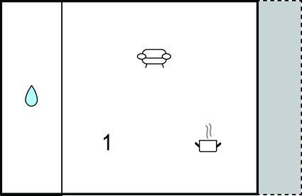 Badezimmer (nr. 1) - WC. Warmes und kaltes Wasser. Dusche