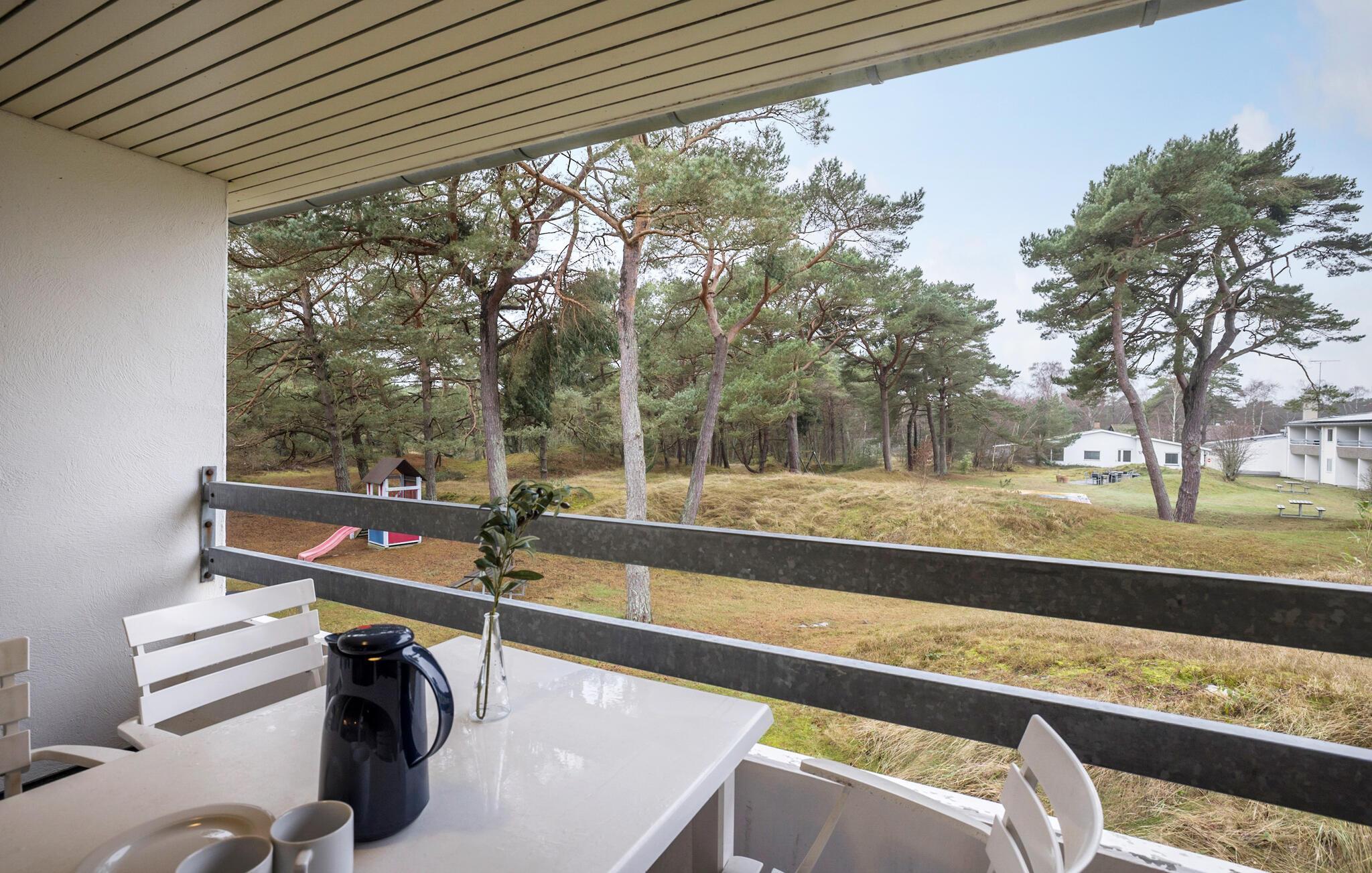 Servieren Sie sich Ihr Frühstück auf Ihrer überdachten, westlich ausgerichteten Terrasse und lassen Sie Ihre Kinder auf dem Spielplatz der Anlage neue Freundschaften knüpfen. Atmen Sie die wohltuende Mischung aus Waldluft und Meeresbrise ein, während Sie hier abends den Tag bei einem Glas Wein oder einer Tasse Tee ausklingen lassen.