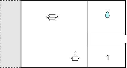 Badezimmer (nr. 1) - WC. Warmes und kaltes Wasser. Dusche