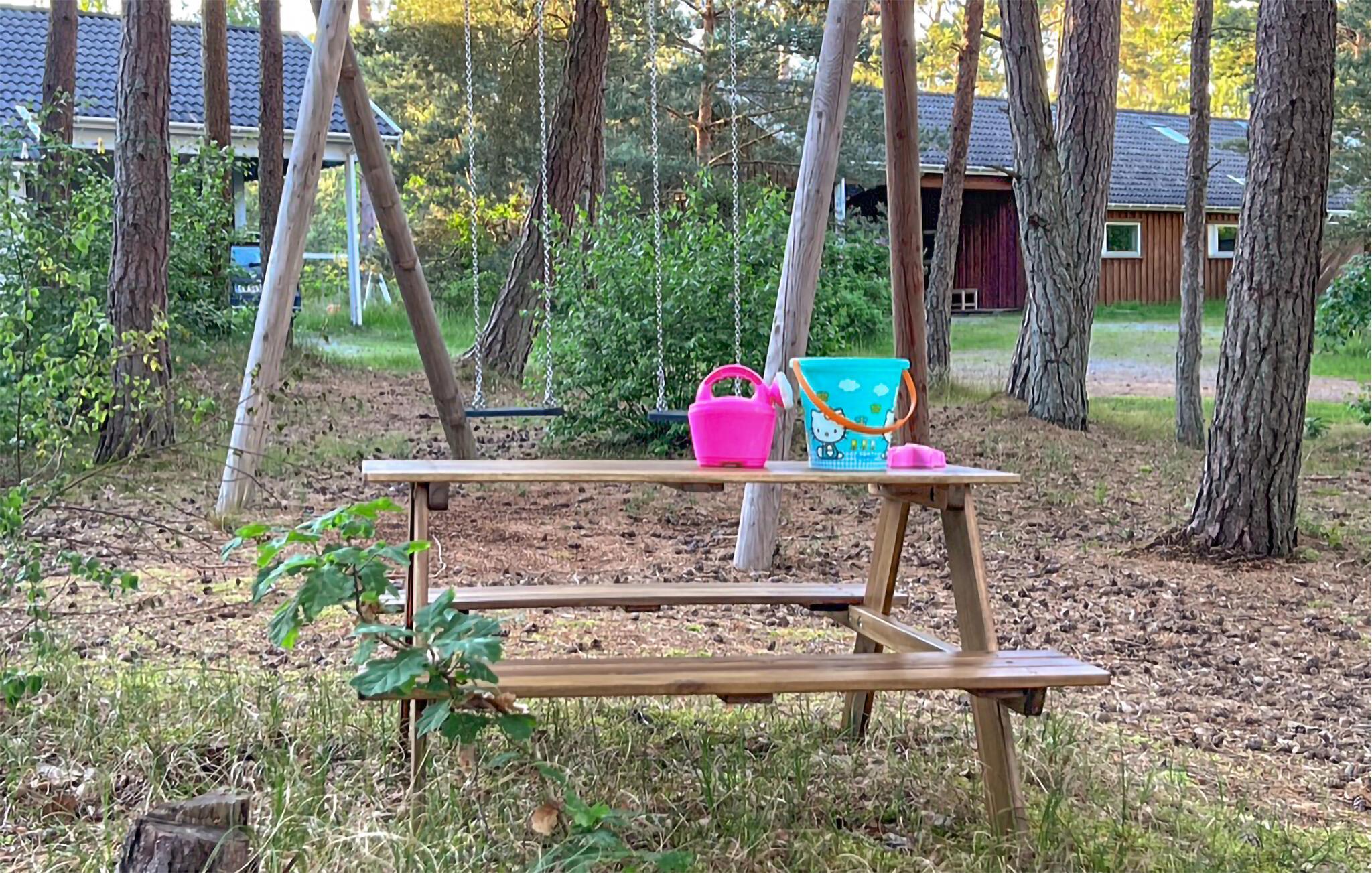 Die große Terrasse ist ideal, um an lauen Sommerabenden Sonne zu genießen oder zu grillen. Das Haus verfügt über einen kleinen Spielplatz, wo sich die Kinder so richtig austoben können.