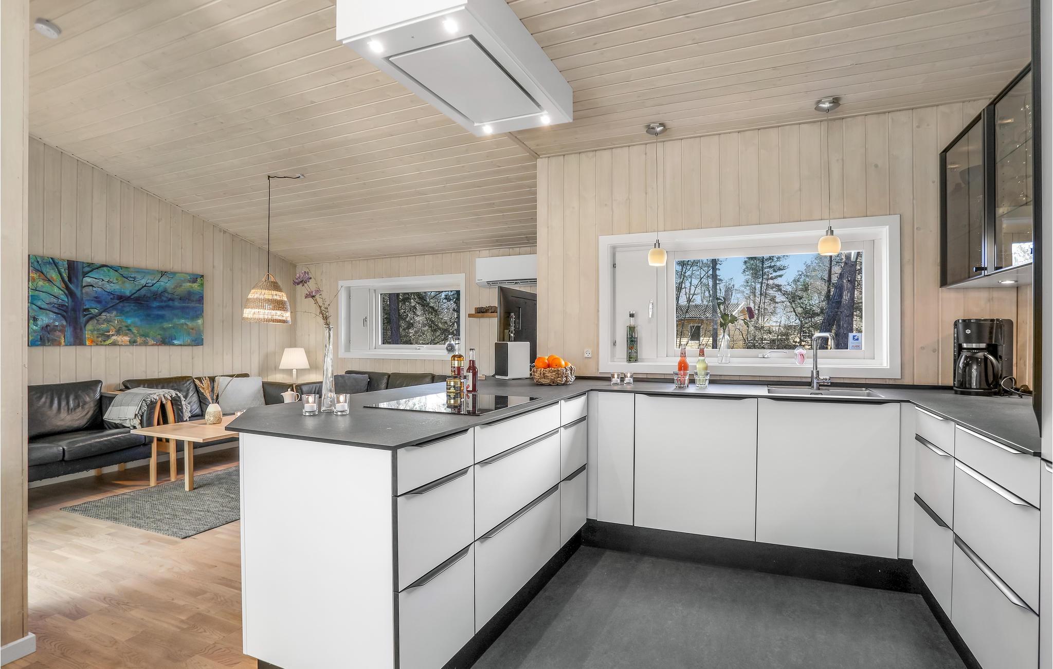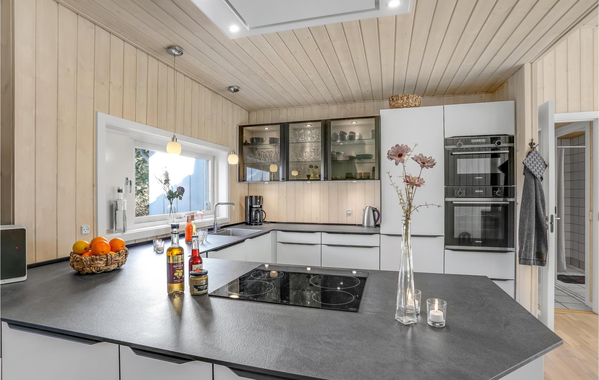 Willkommen in diesem einladenden Ferienhaus, das teilweise in den Dünen, ca. 200 m vom weißen Sandstrand von Dueodde entfernt liegt. Das Haus verfügt über 5 gute Schlafzimmer und ein geräumiges helles Wohnzimmer mit Holzofen. Alles ist in hellen Farben und im modernen, skandinavischen Stil gehalten. Die Küche ist modern und gut ausgestattet und lädt zum gemeinsamen Kochen ein. Der Poolraum bietet Badespaß für die ganze Familie. Nach einem Ausflug ins Schwimmbad, können Sie sich im großen Whirlpool massieren lassen und die Sauna bietet angenehme Wärme und Entspannung.