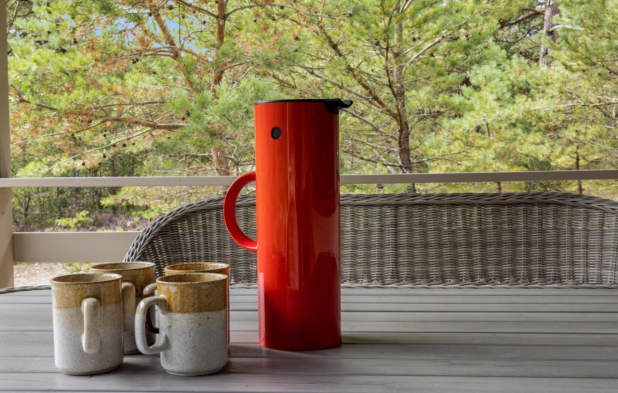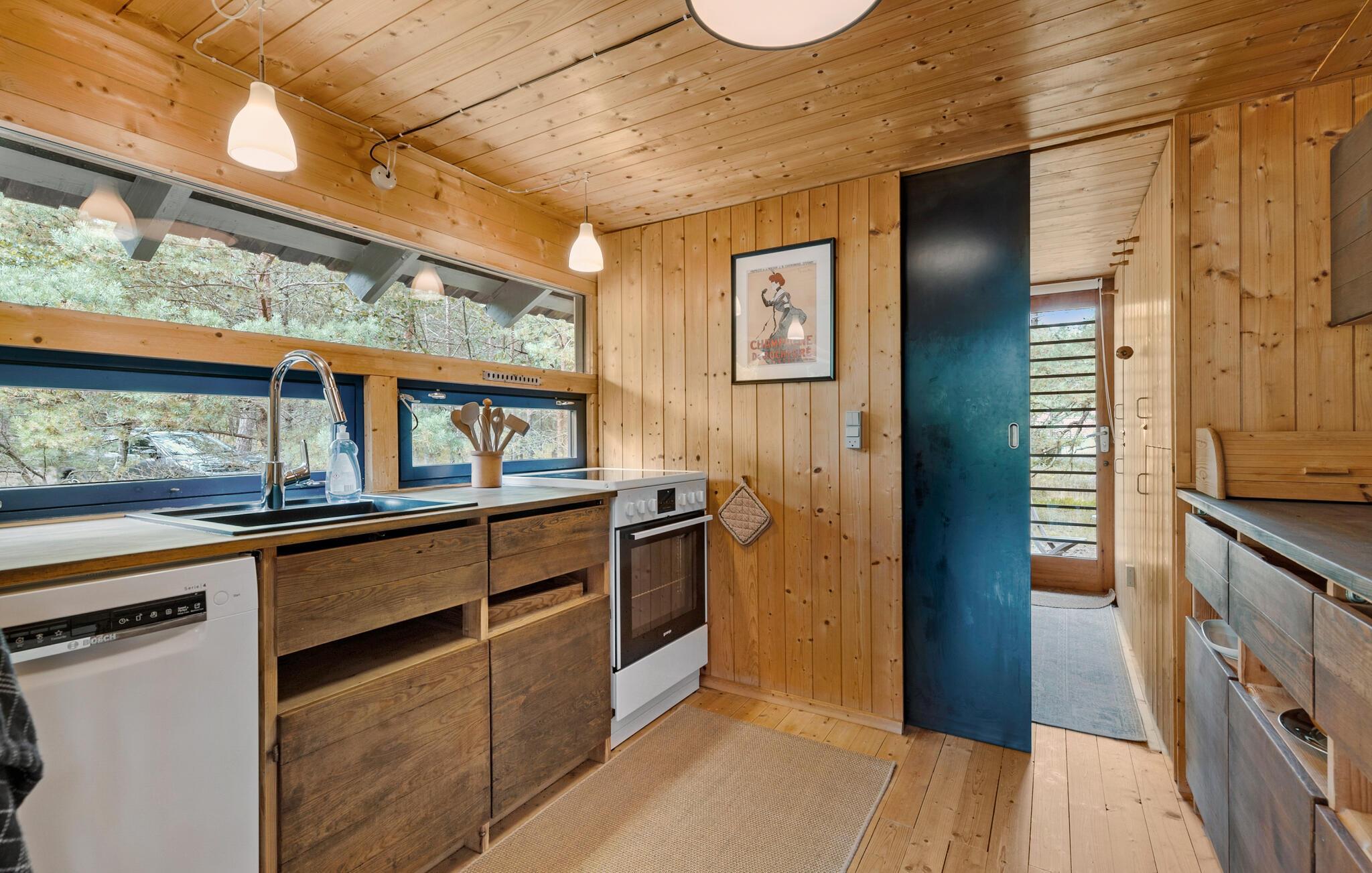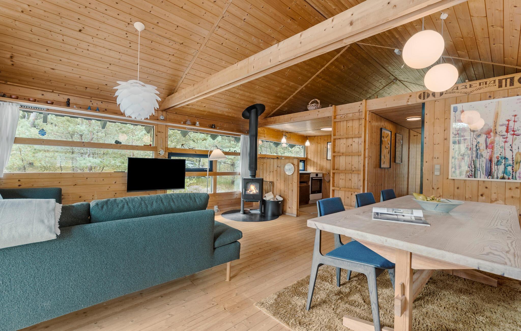 Verbringen Sie Ihren nächsten Dänemark-Urlaub in diesem kompakten Ferienhaus in Dueodde, das direkt inmitten der Dünenlandschaft liegt. Dieses Haus ist die ideale Rückzugsmöglichkeit in der Natur für eine kleine Familie. Genießen Sie die ruhige Lage und starten Sie Ihren Tag mit einem Frühstück auf der großzügigen, überdachten Terrasse. Lassen Sie den Blick über die heidebewachsenen Dünen schweifen und spüren Sie die frische Meeresluft. Der Wohnbereich ist mit stilvollen Holzelementen gestaltet und schafft eine warme Atmosphäre. Machen Sie es sich auf dem bequemen Sofa gemütlich, genießen Sie die behagliche Wärme des Kaminofens und schauen Sie einen guten Film. Bereiten Sie in der gut ausgestatteten Küche Ihre Lieblingsgerichte zu und genießen Sie diese anschließend am Esstisch im Wohnbereich.