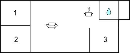 Badezimmer (nr. 1) - WC. Warmes und kaltes Wasser. Dusche