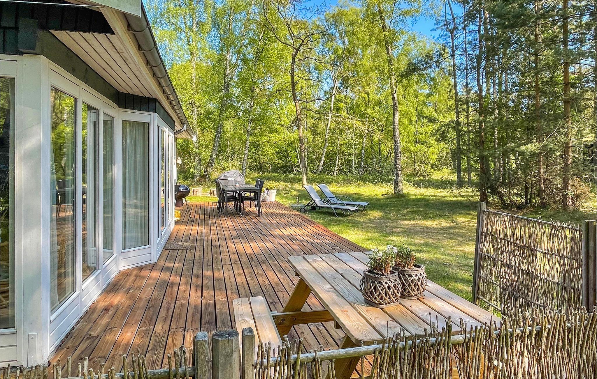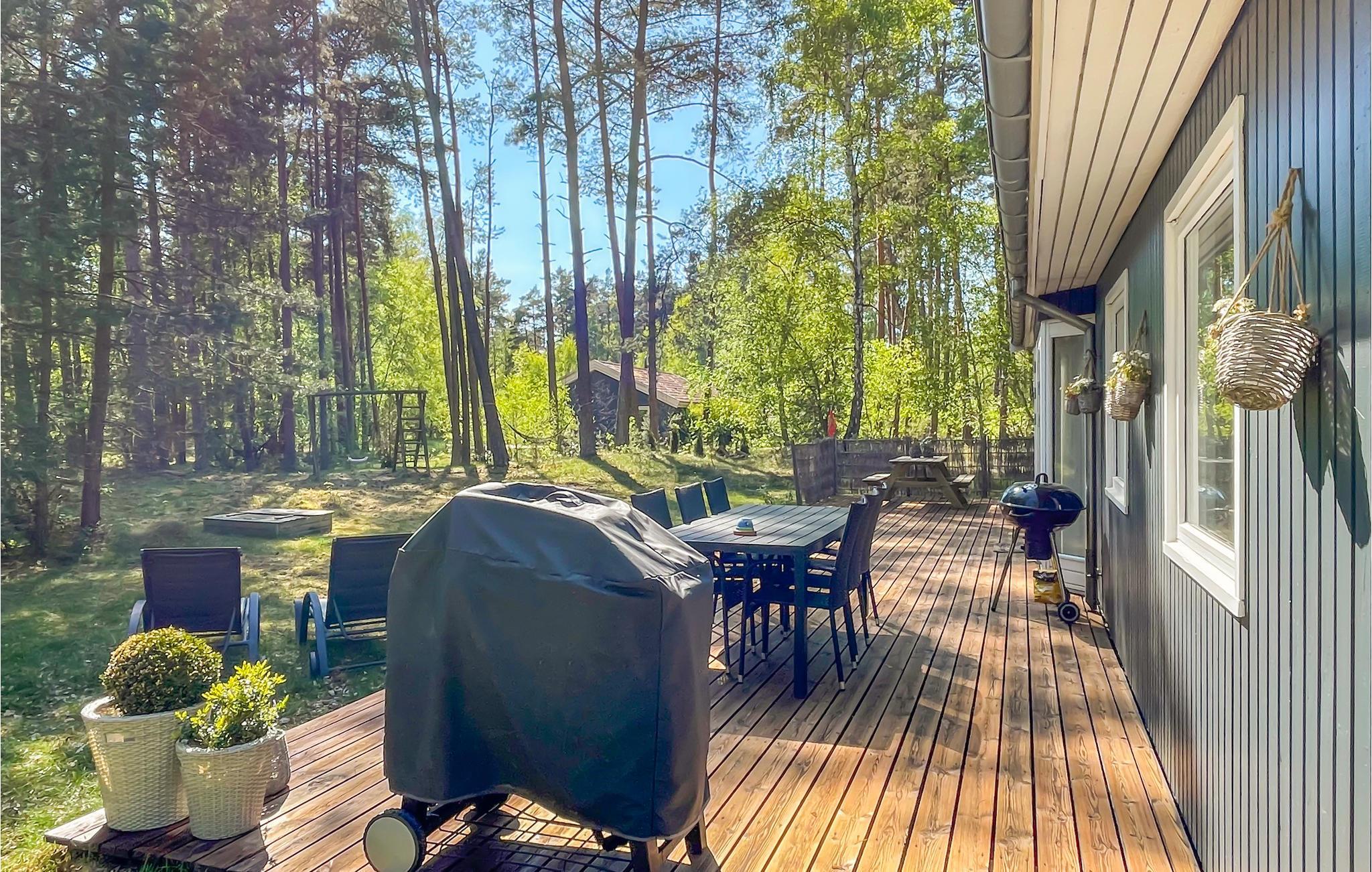 Das Haus bietet Ihnen eine große, sonnige Holzterrasse mit Loungemöbeln und sowohl einen Gas- als auch einen Holzkohlegrill zum Zubereiten von Köstlichkeiten unter freiem Himmel. Die Terrasse verläuft um einen großen Teil des Hauses, sodass Sie jederzeit ein ideales Plätzchen finden werden. Auf dem Grundstück befindet sich eine Feuerstelle, sowie eine Schaukel und ein Sandkasten für die Unterhaltung der Kinder. Darüber hinaus gibt es rund ums Haus mehr als genug Platz für körperliche Entfaltung.