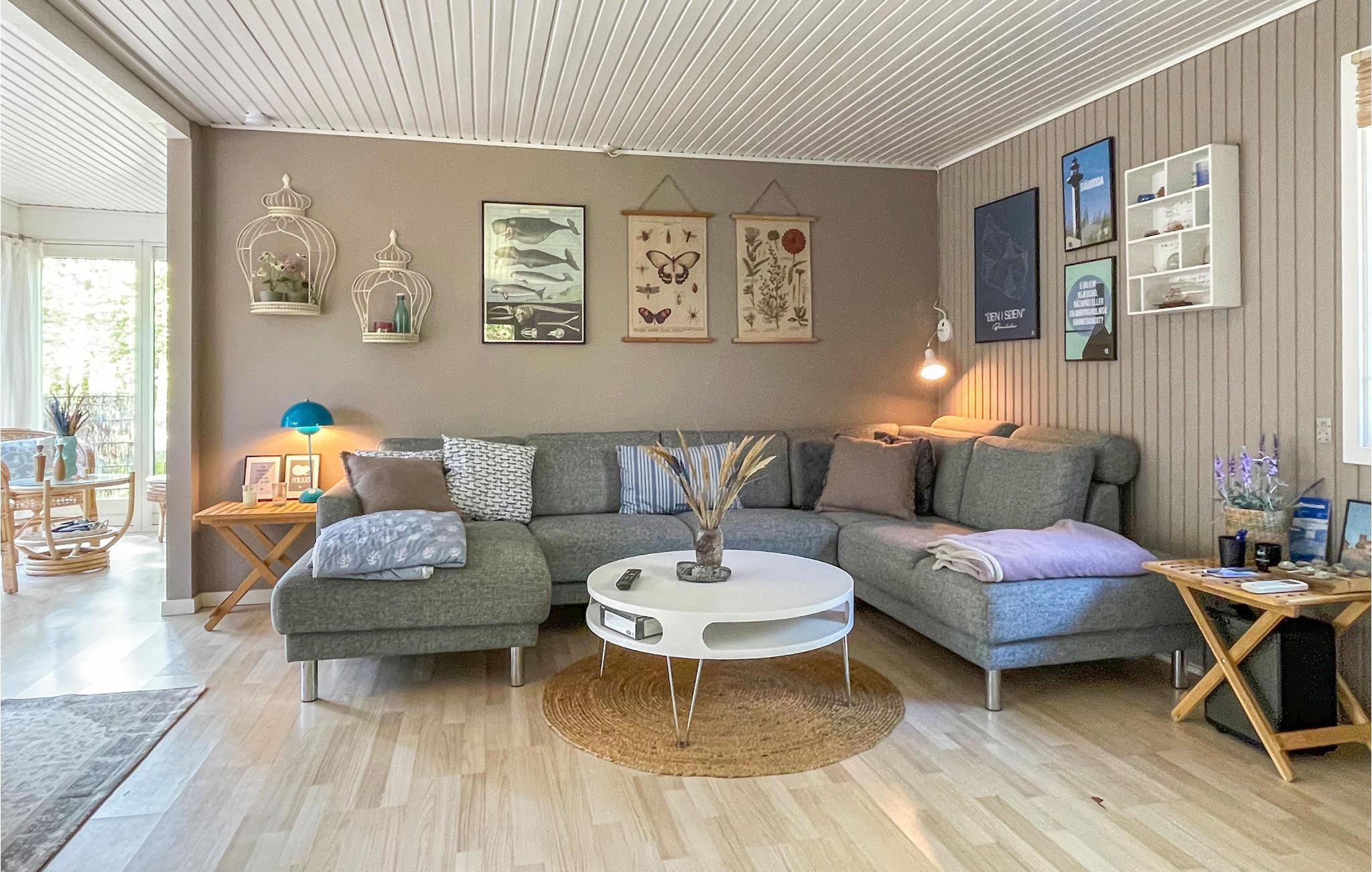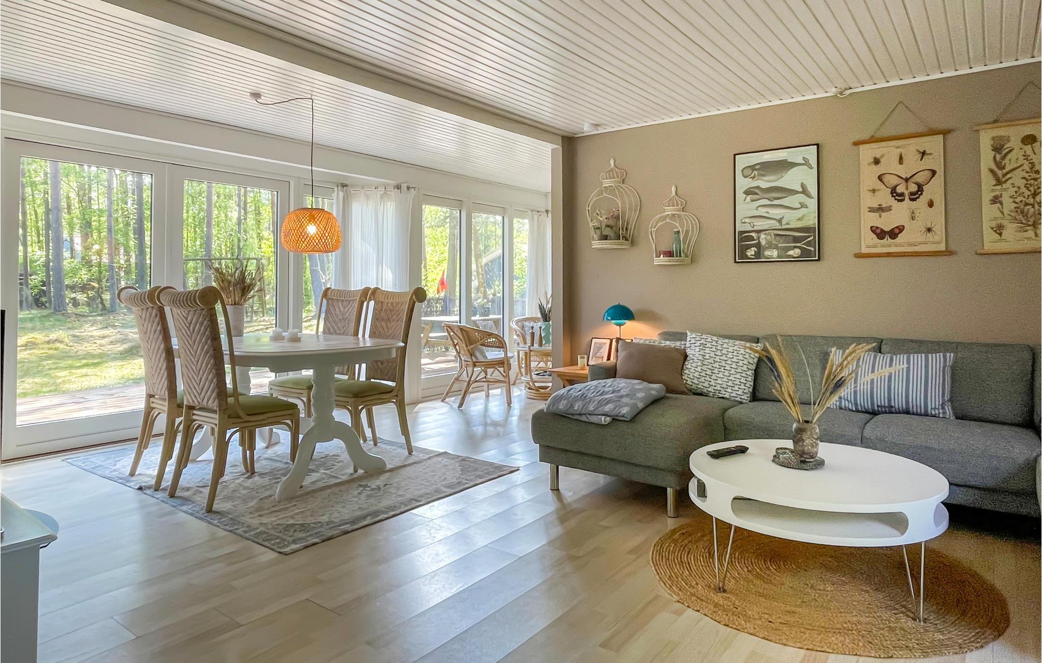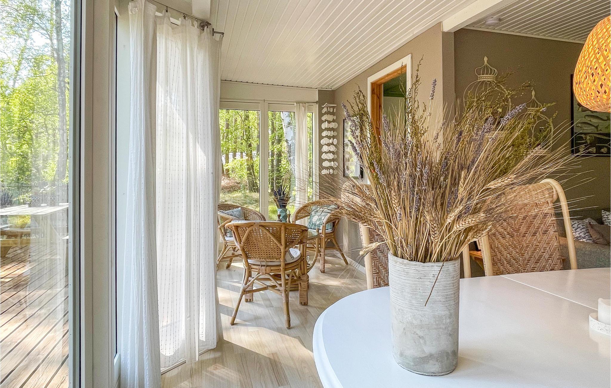 Willkommen in diesem geräumigen, hellen und geschmackvoll eingerichteten Ferienhaus. Sie werden viele gemütliche Stunden im Wohnzimmer verbringen, wo Sie mit Chromecast Filme und Serien auf den Fernseher streamen, Musik hören und an kühlen Tagen dem wärmenden, knisternden Feuer im Ofen lauschen. Hier finden Sie auch einen Essbereich und die charmante, offene Küche vor. Große Fenster lassen viel Licht herein und eröffnen den Blick auf die grüne Umgebung. Im Nebengebäude finden Sie eine Waschmaschine.