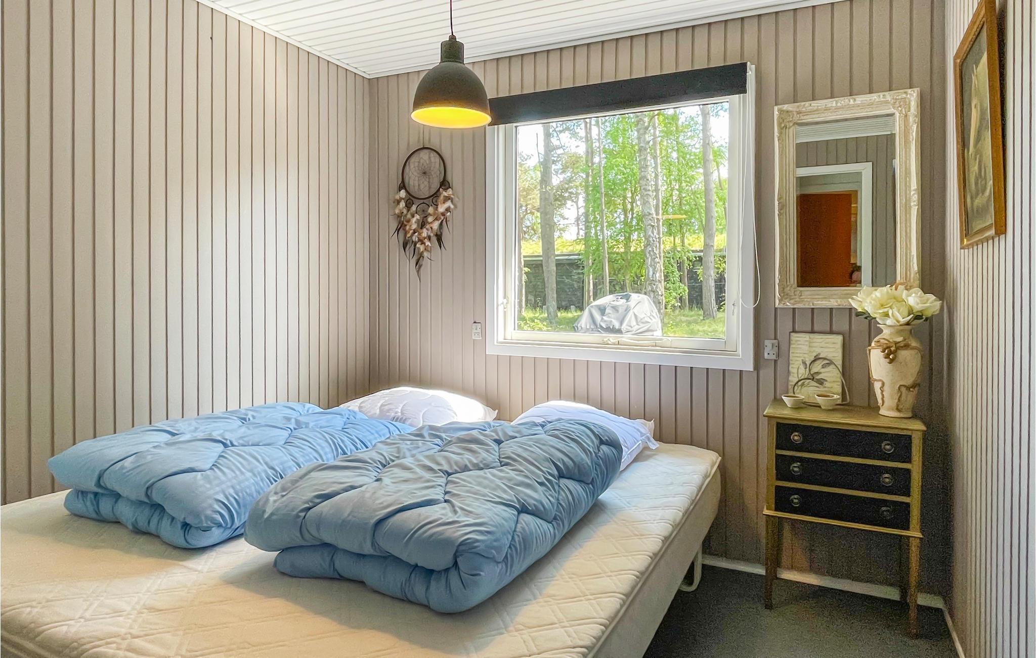 Nur ein Spaziergang trennt Sie von einem schönen Sandstrand, der sich zum Sonnenbaden, Schwimmen und Spielen im Sand anbietet. Wenn Sie gerne Golf spielen, erreichen Sie in nur 1,6 km den Golfplatz von Dueodde. Sie wohnen in einem ruhigen und beliebten Ferienhausgebiet, das Zugang zu vielen schönen Wanderwegen bietet - zum Beispiel entlang der Küste zum markanten Leuchtturm von Dueodde.