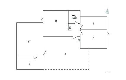 Badezimmer (nr. 1) - WC. Warmes und kaltes Wasser. Dusche