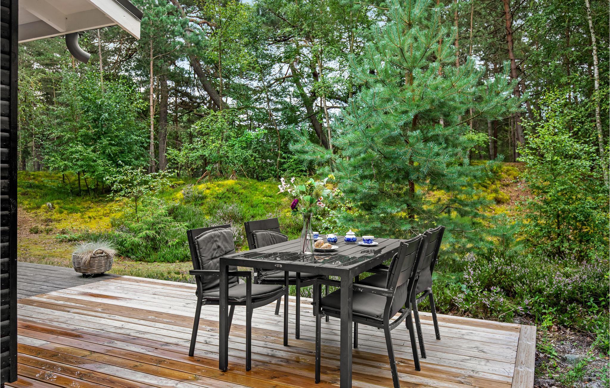 Vom Wohnzimmer aus haben Sie Zugang zu einer schönen, sichtgeschützten und teilüberdachten Holzterrasse mit Loungemöbeln und einem Gasgrill, wo Sie Im Freien Ihre Mahlzeiten zubereiten können. Hier genießen die frische Luft, lesen ein gutes Buch, trinken abends eine Tasse Kaffee oder ein gutes Glas Wein. Um das Haus herum gibt es viel Platz für körperliche Entfaltung.
