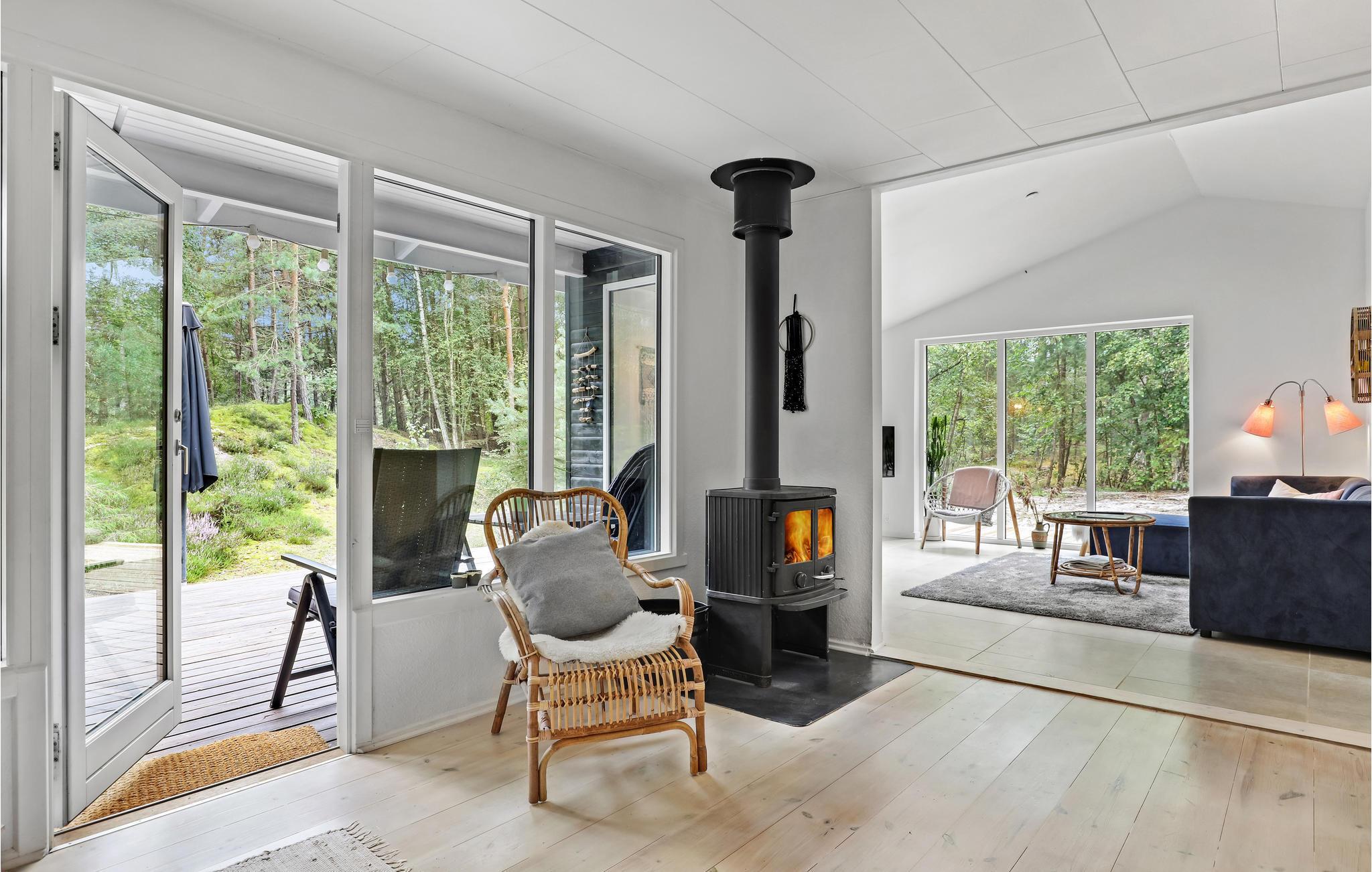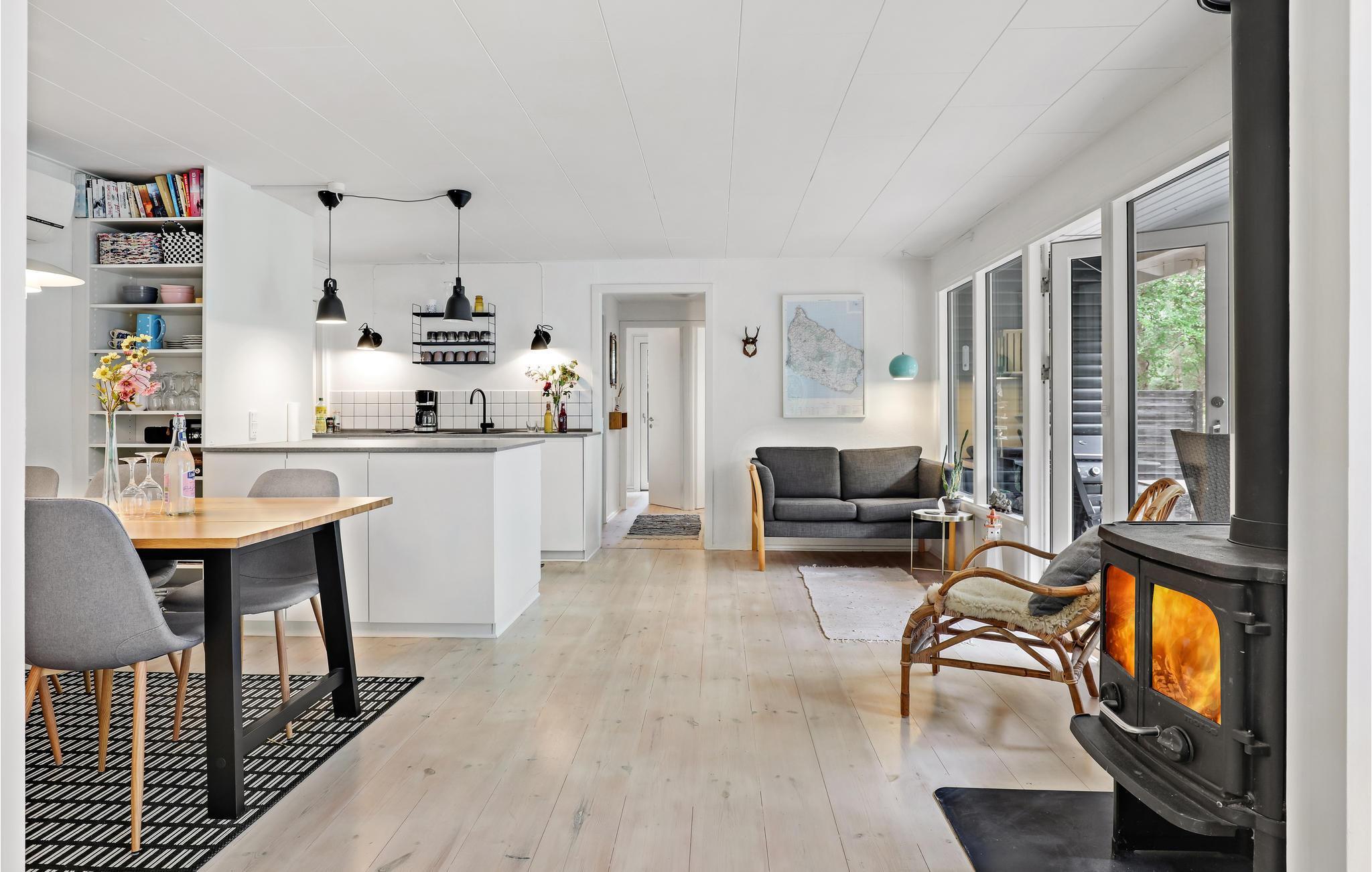 Das Haus ist mit schönen Holzböden, hell und gemütlich eingerichtet. Das Herzstück des häuslichen Lebens ist das kombinierte Wohn- und Esszimmer mit offener Küche, in dem Sie fernsehen, Radio oder Musik hören und in kühlen Jahreszeiten die Wärme und die gemütliche Atmosphäre am Kaminofen genießen können. Darüber hinaus besteht das Haus aus zwei Badezimmern und drei Schlafzimmern. Im Hauswirtschaftsraum finden Sie eine Waschmaschine und einen Trockner. Im Haus genießen Sie über Glasfasernetz kostenfreien Internetzugang.