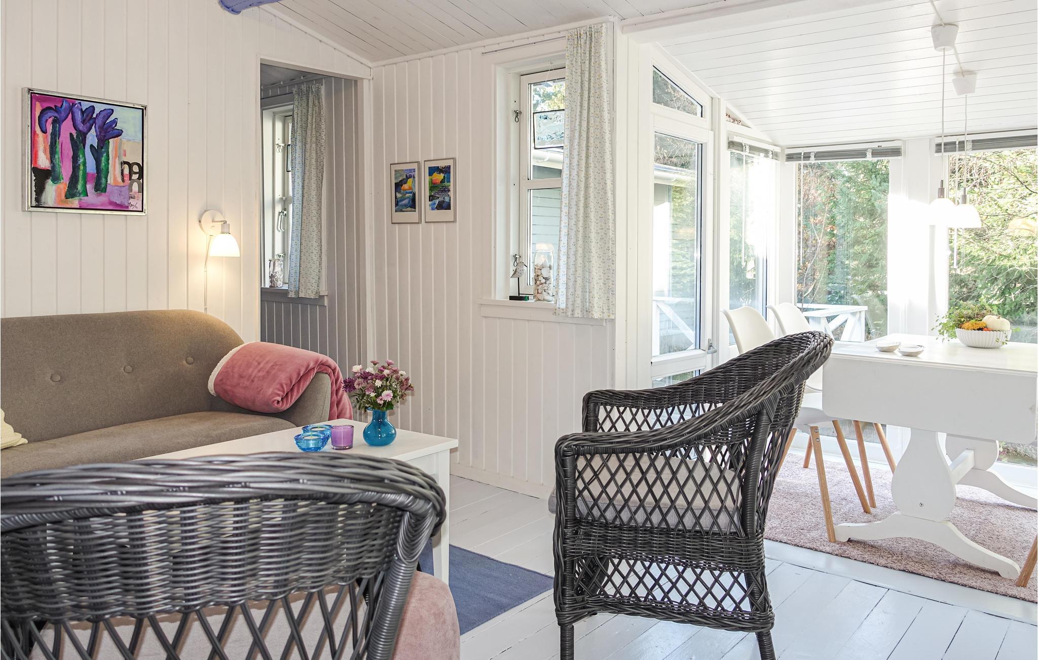 Willkommen in diesem hellen und stilvollen Ferienhaus, in dem eine gemütliche Zeit vorprogrammiert ist. Einige Zeit verbringen Sie vermutlich im gemütlichen Wohnzimmer mit seinem schönen Essbereich. Hier können Sie unter Anderem fernsehen und in der kühlen Jahreszeit die Wärme und behagliche Atmosphäre des Holzofens genießen. In der hellen, gut ausgestatteten Küche macht das Kochen Spaß. Neben den beiden Schlafzimmern im Haupthaus befindet sich im Anbau ein Schlafzimmer mit Doppelbett. Im Badezimmer gibt es eine komfortable Fußbodenheizung.