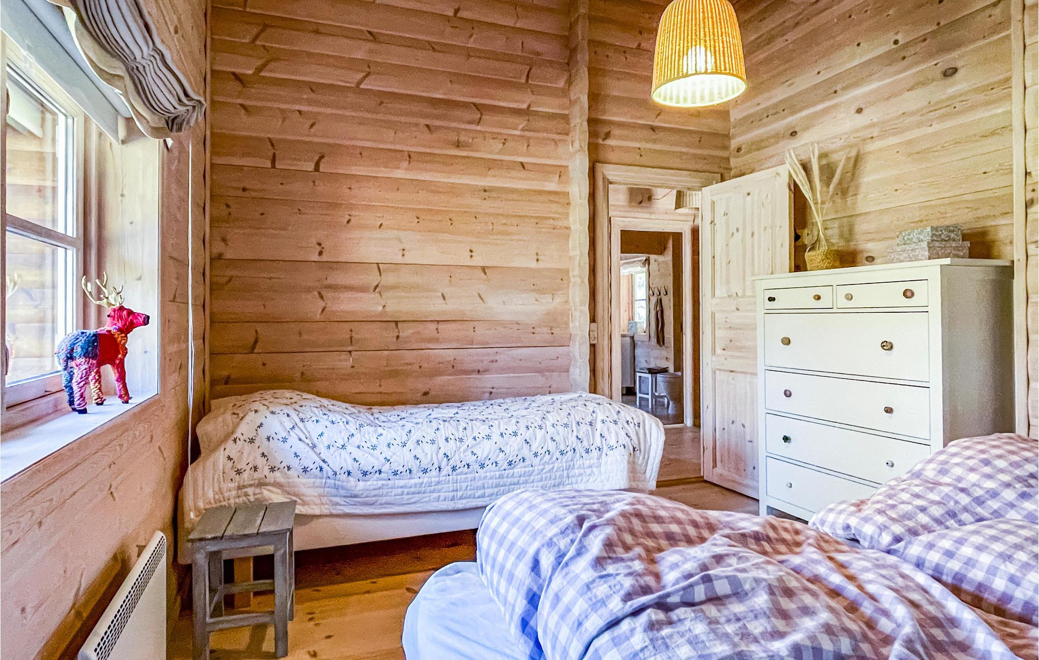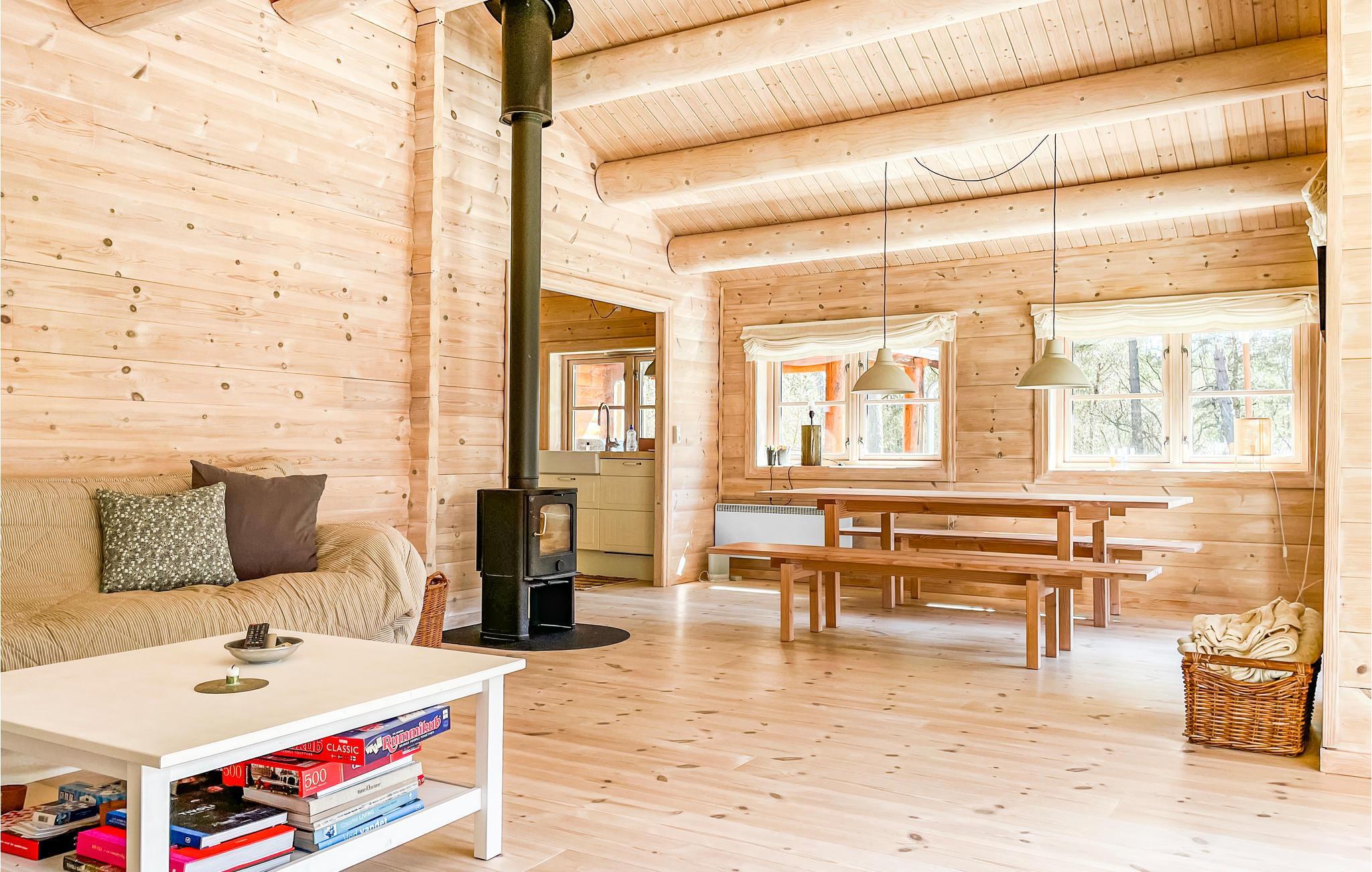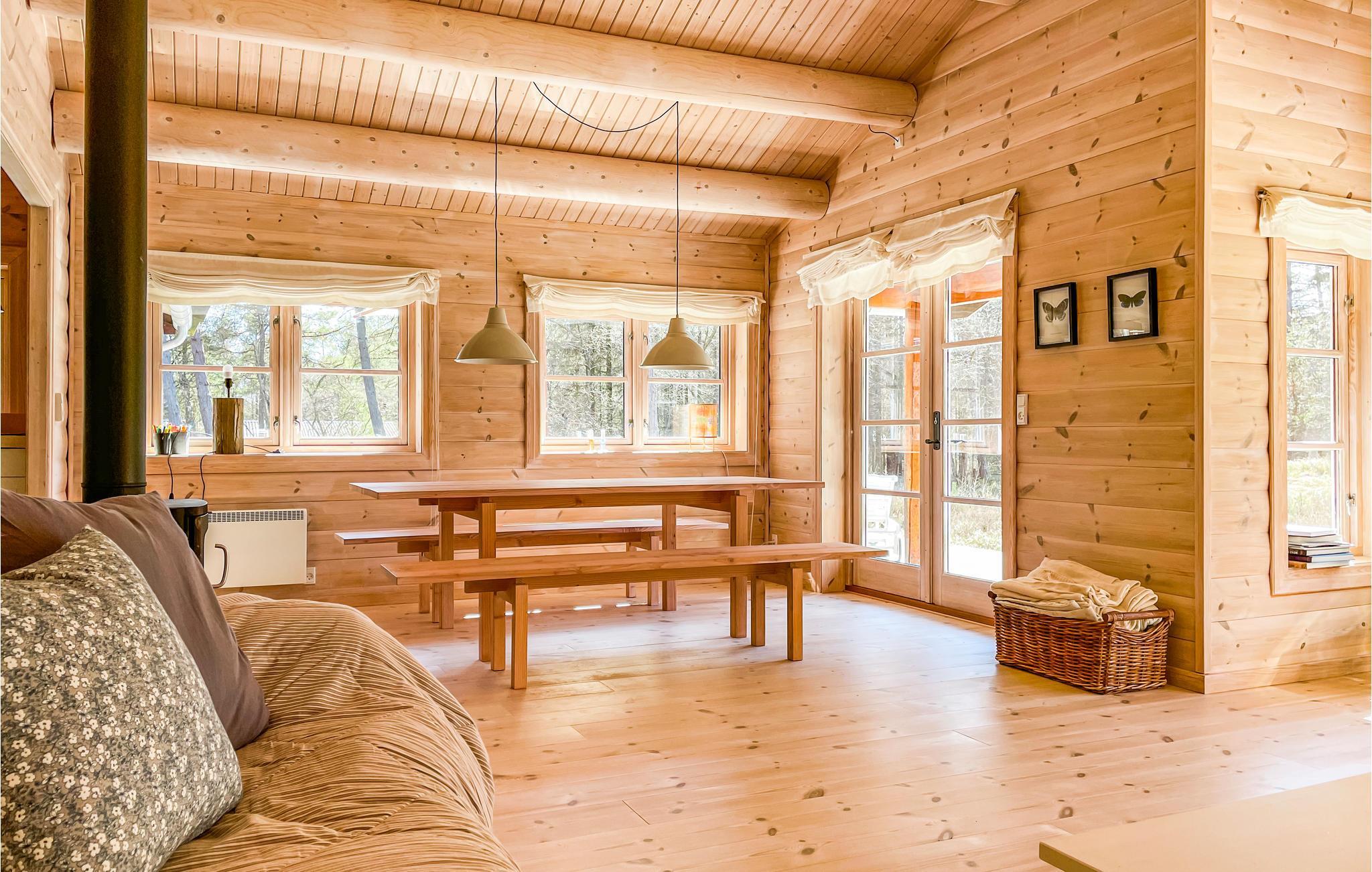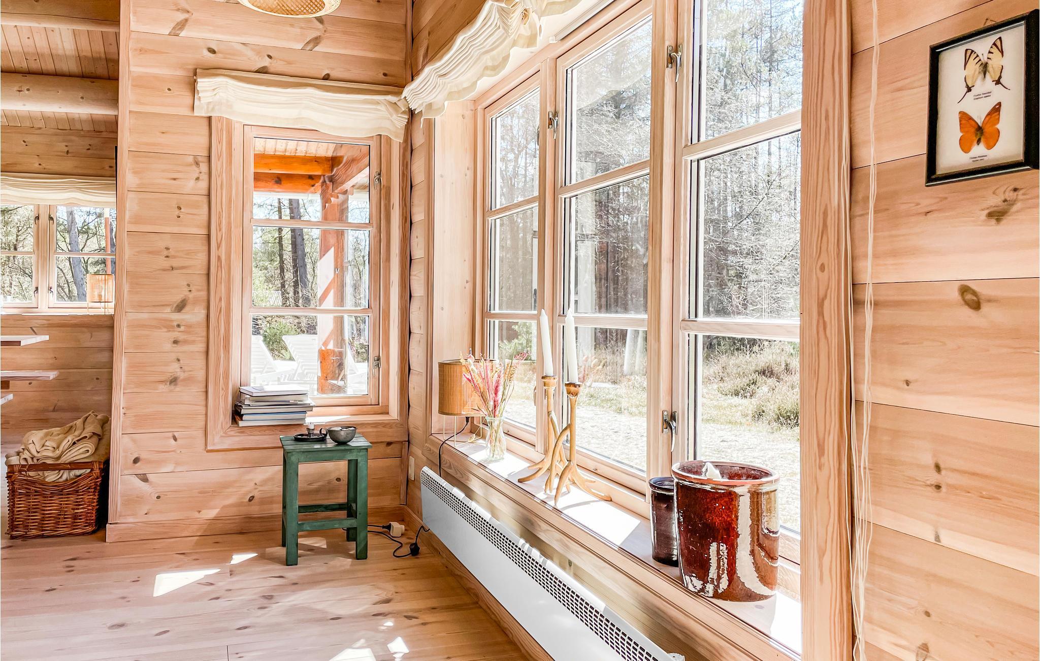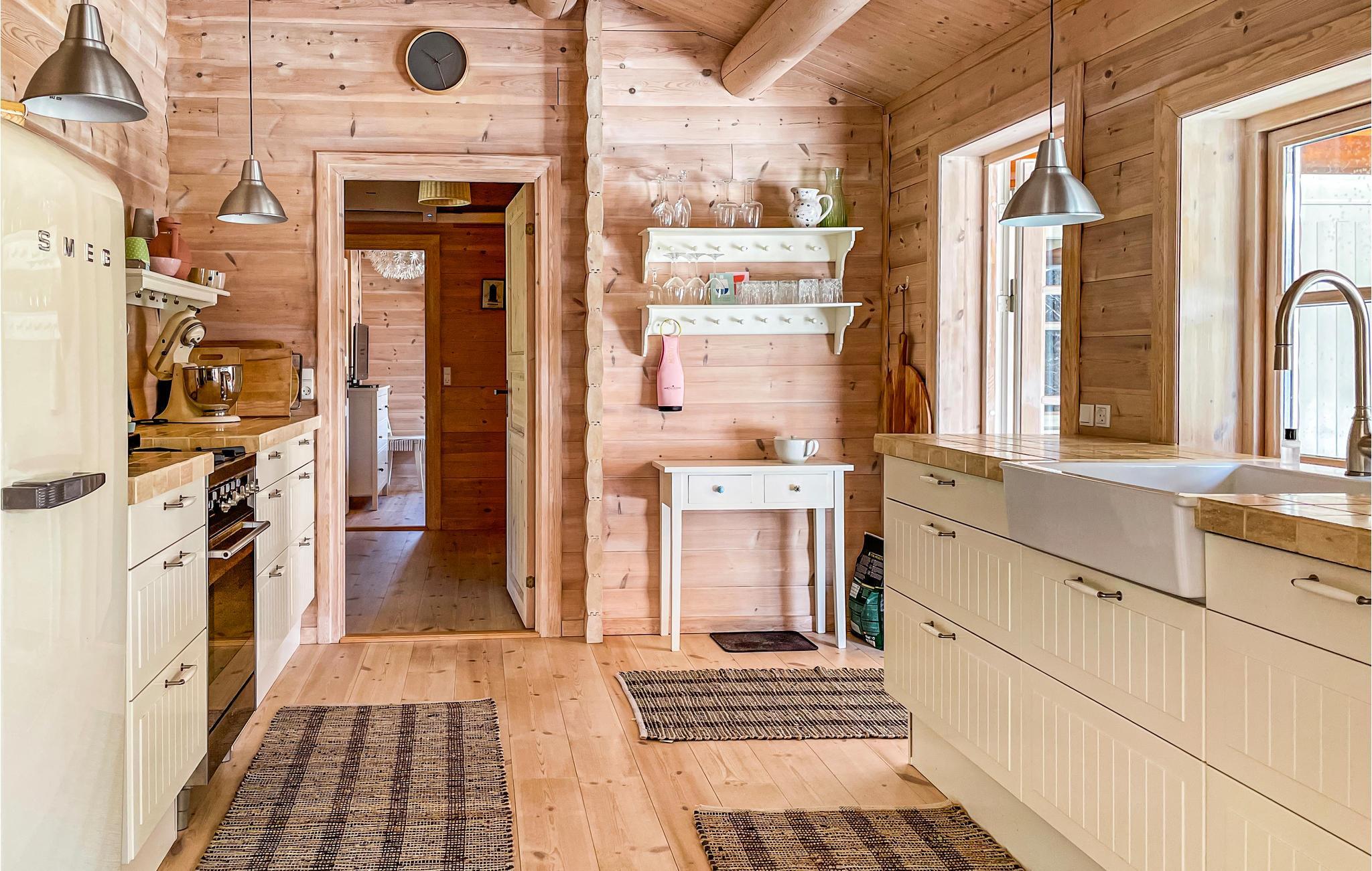 Willkommen in diesem einzigartigen Ferienhaus, das von Anfang an durch wohlige Holzböden, -wänden und -decken eine unverwechselbare Urlaubsatmosphäre schafft. Die Räume sind offen bis zum Dachbalken, dadurch erscheint das Haus geräumig und hell. Im gemütlichen Wohnzimmer können Sie auf weichen Sofas entspannen, Filme schauen und in der kühleren Jahreszeit die Wärme des Holzofens in behaglicher Atmosphäre genießen. In der offenen, gut ausgestatteten Küche gelingt Ihnen die Zubereitung all Ihrer Lieblingsmahlzeiten. Im Badezimmer wärmt Sie eine komfortable Fußbodenheizung. Im Nebengebäude finden Sie eine Waschmaschine.