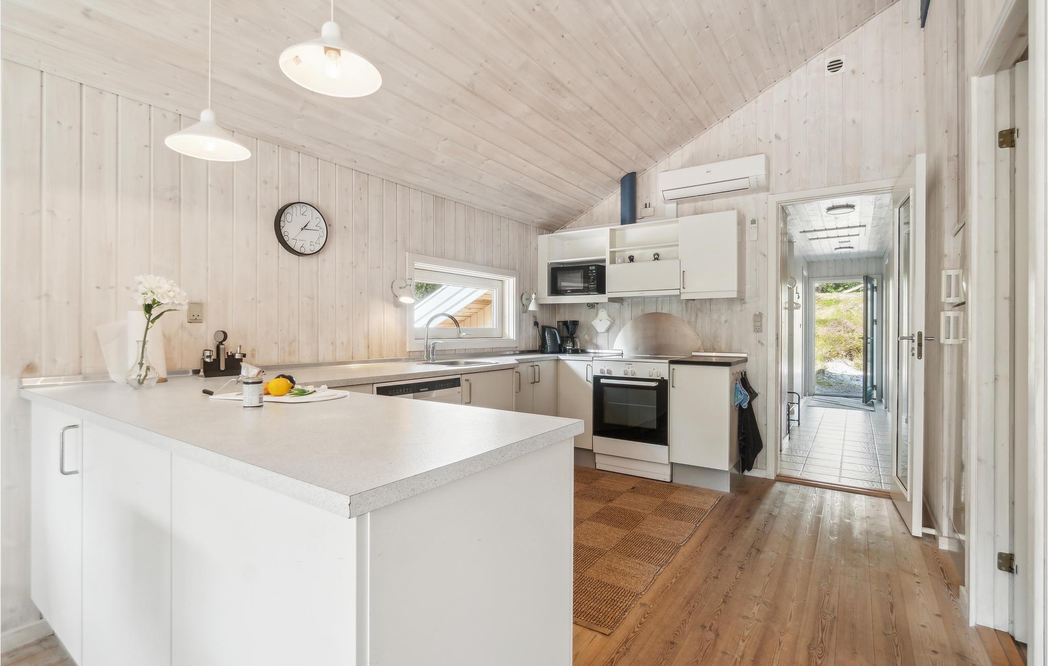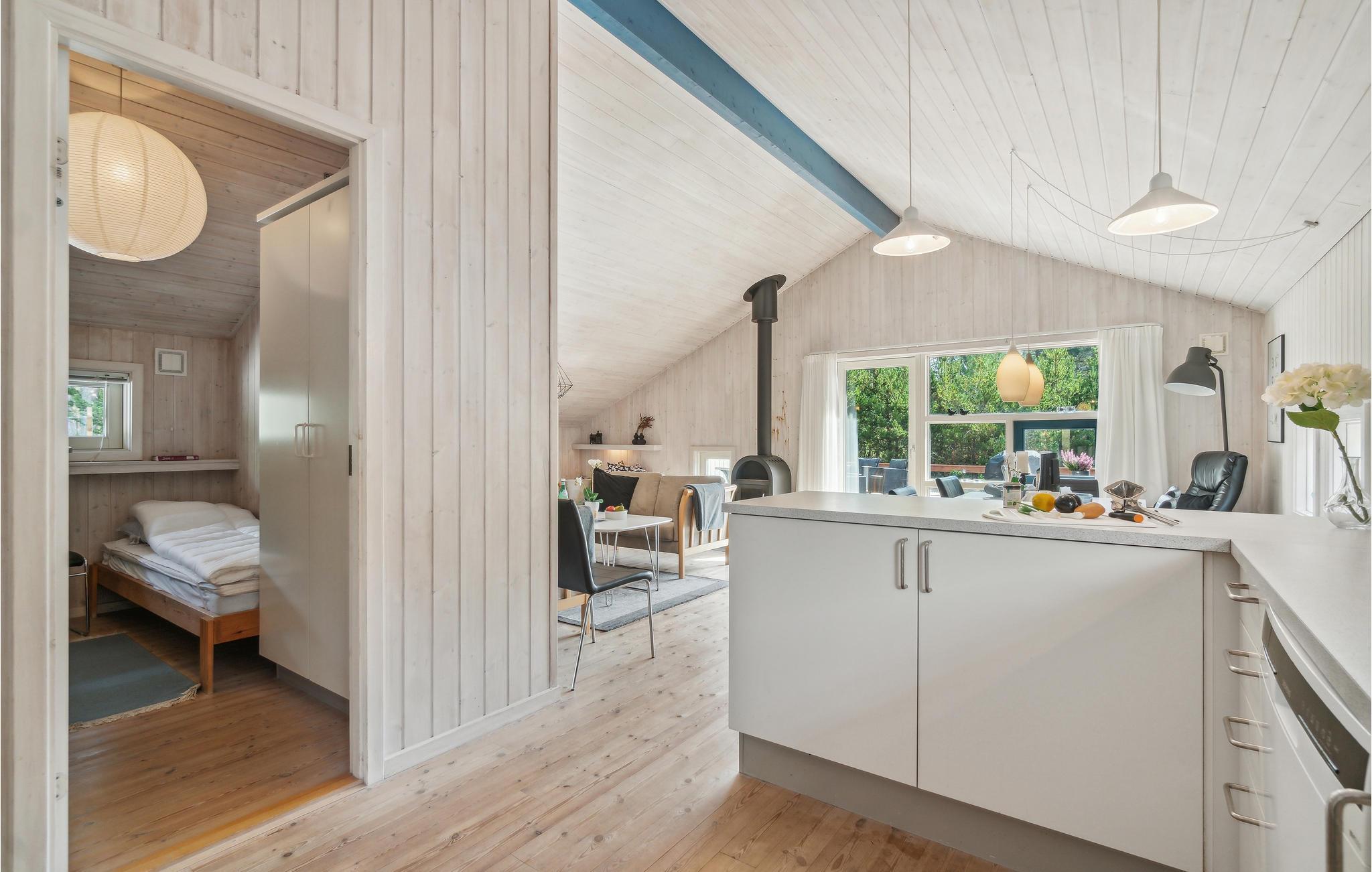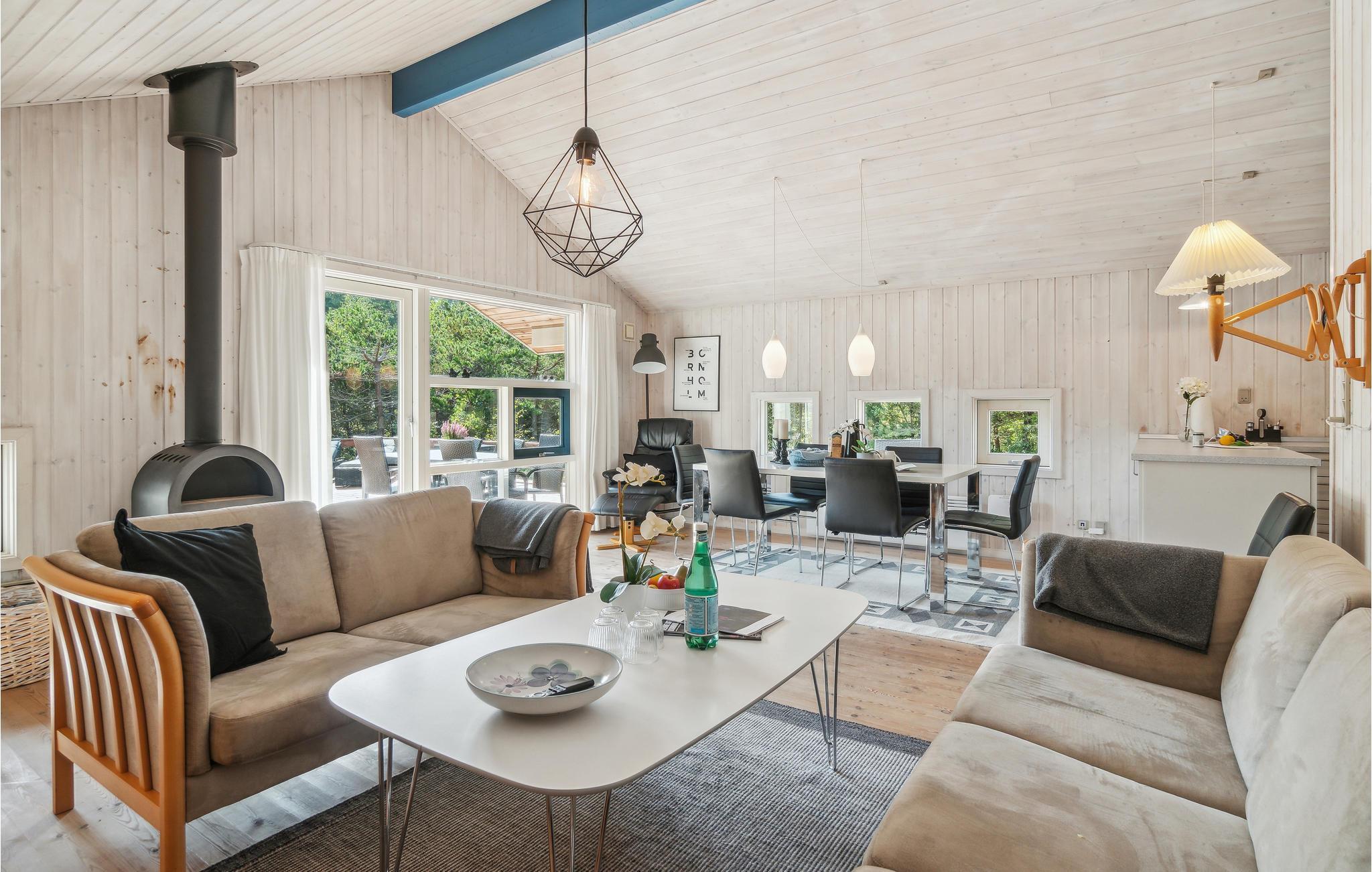 Das Haus ist modern und hell eingerichtet. Der natürliche Treffpunkt ist das kombinierte Wohn- und Esszimmer, in dem Sie es sich gemütlich machen, fernsehen, Radio oder Musik hören, Spiele spielen und einfach nur plaudern können. Im Winter werden Sie die Wärme und die gemütliche Atmosphäre des Kaminofen schätzen. Im Wohnzimmer finden Sie auch einen kleinen Bereich mit 2 Schlafplätzen. In der offenen, gut ausgestatteten Küche macht das Kochen Freude. Zu den Highlights des Hauses zählen das große Badezimmer mit komfortabler Fußbodenheizung sowie der Wellnessbereich und die Sauna für grundlegende Entspannung nach einem der langen, aktiven Urlaubstage.