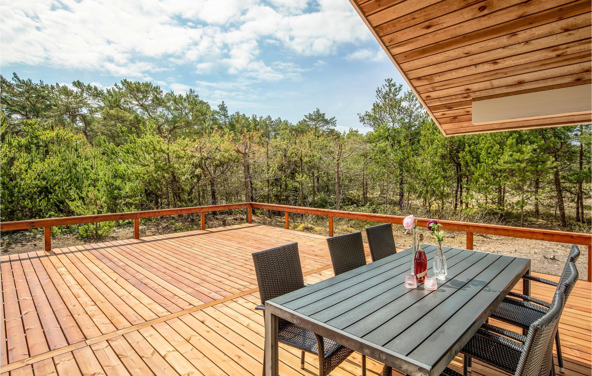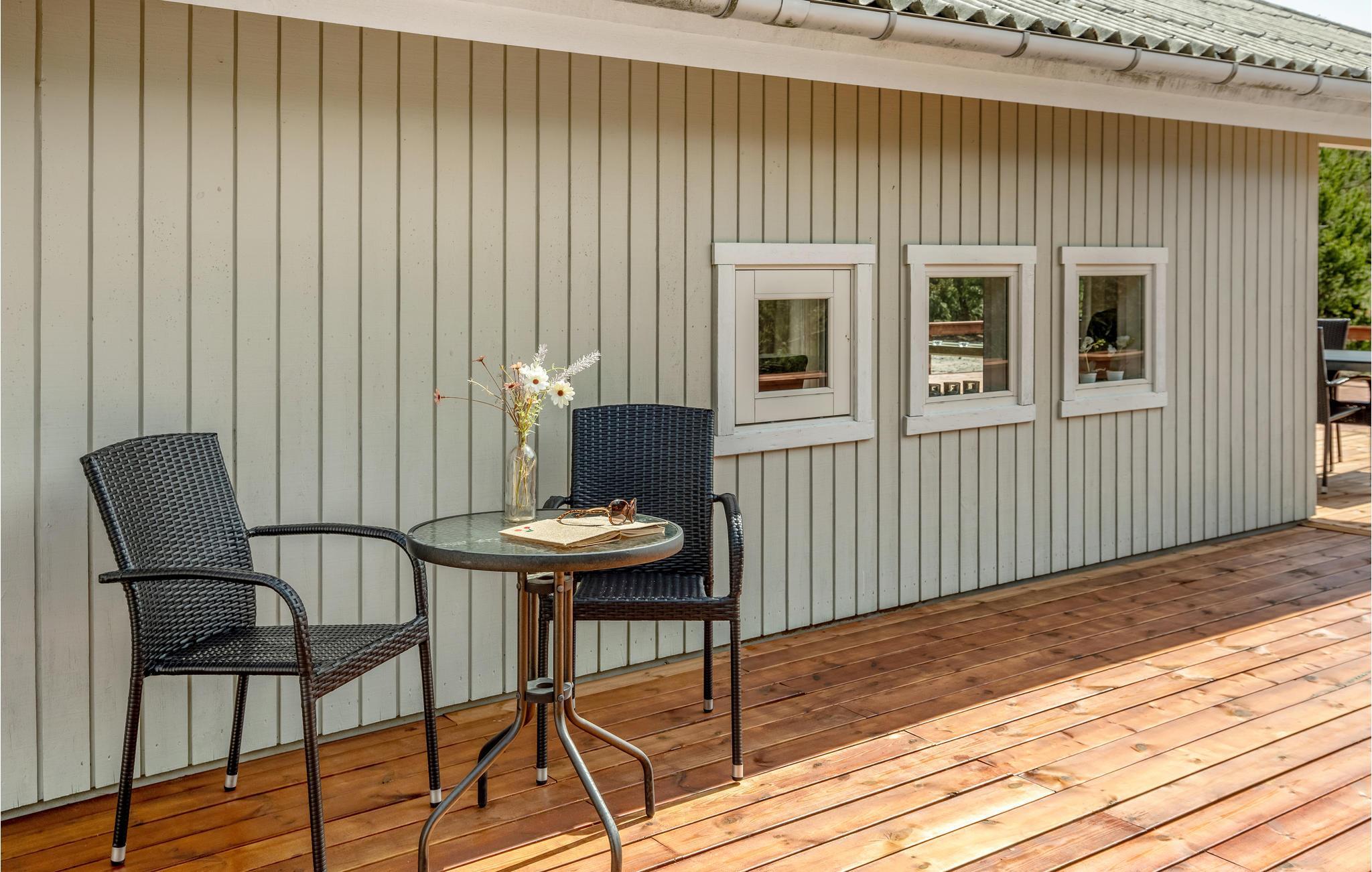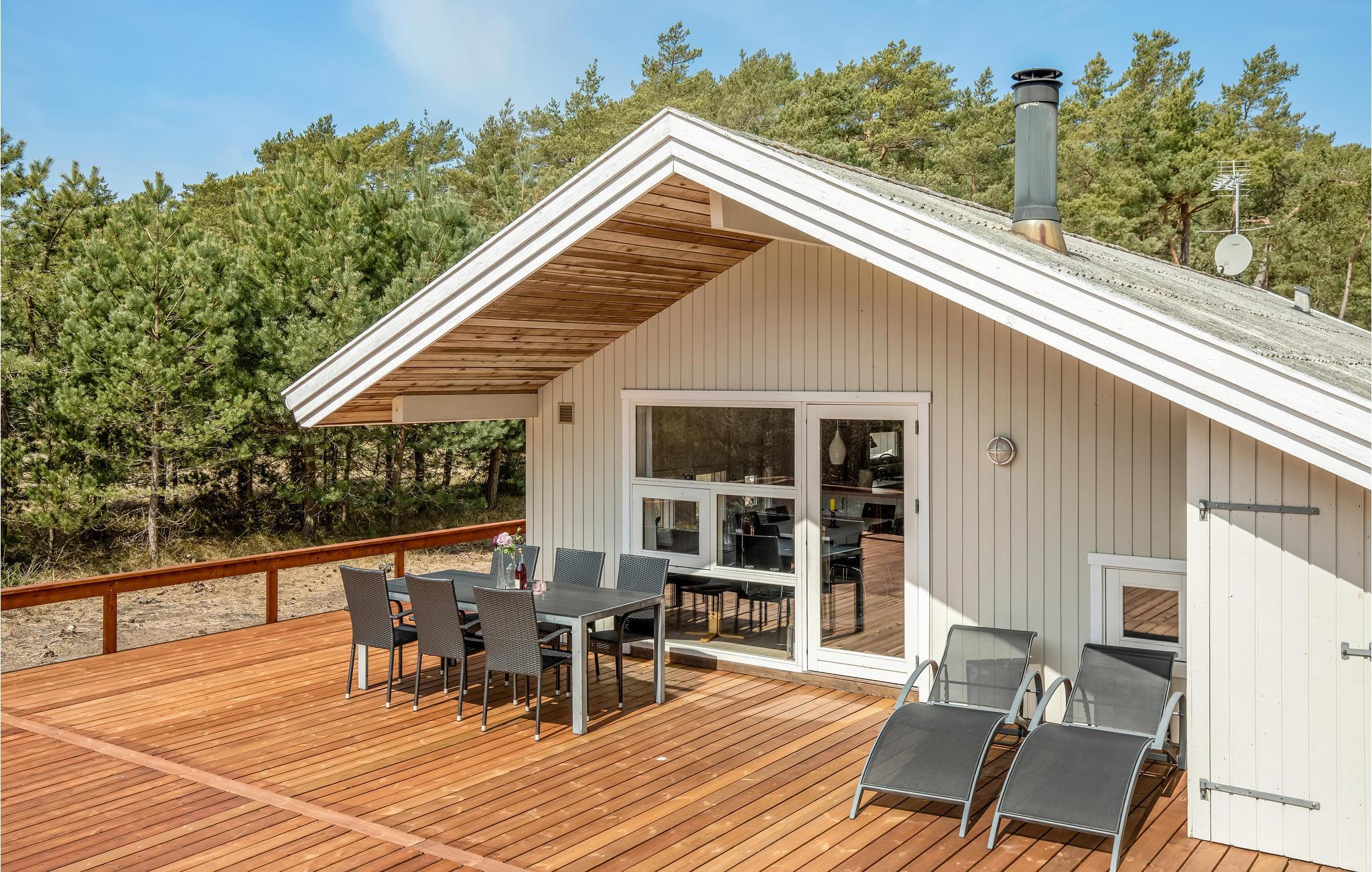 Rund um einen großen Teil Ihres Hauses verläuft eine teilüberdachte Holzterrasse mit Loungemöbeln wie z. B. Sonnenliegen und einem Grill, damit Sie auch im Freien leckere Gerichte zubereiten können. Die Terrasse eignet sich hervorragend zum Studieren Ihrer Urlaubslektüre, Einnehmen Ihrer Mahlzeiten oder zum Genuss von Kaffe, Wein, Eis oder anderer Köstlichkeiten. Auf dem Grundstück rund um das Haus finden Ihre Kinder eine Menge Platz zum Spielen.