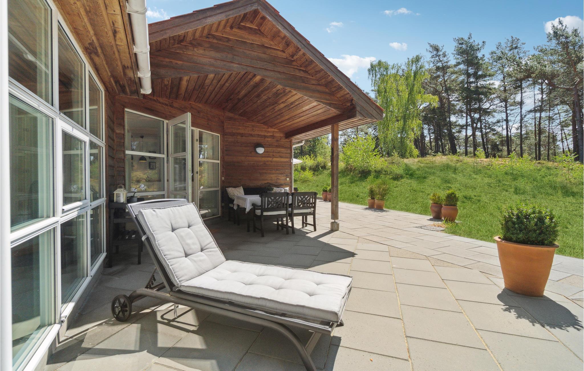 Ein Highlight des Ferienhauses ist die große, teilüberdachte Terrasse mit diversen Outdoormöbeln und einem Grill für gemütliche Grillabende. Hier können Sie die Sonne und die frische Luft bei einer Tasse Kaffee, einem kühlen Bier oder einem guten Glas Wein genießen. Auf dem Gelände gibt es viel eine Menge Platz für Spiel und Spaß für junge und alte Kinder.
