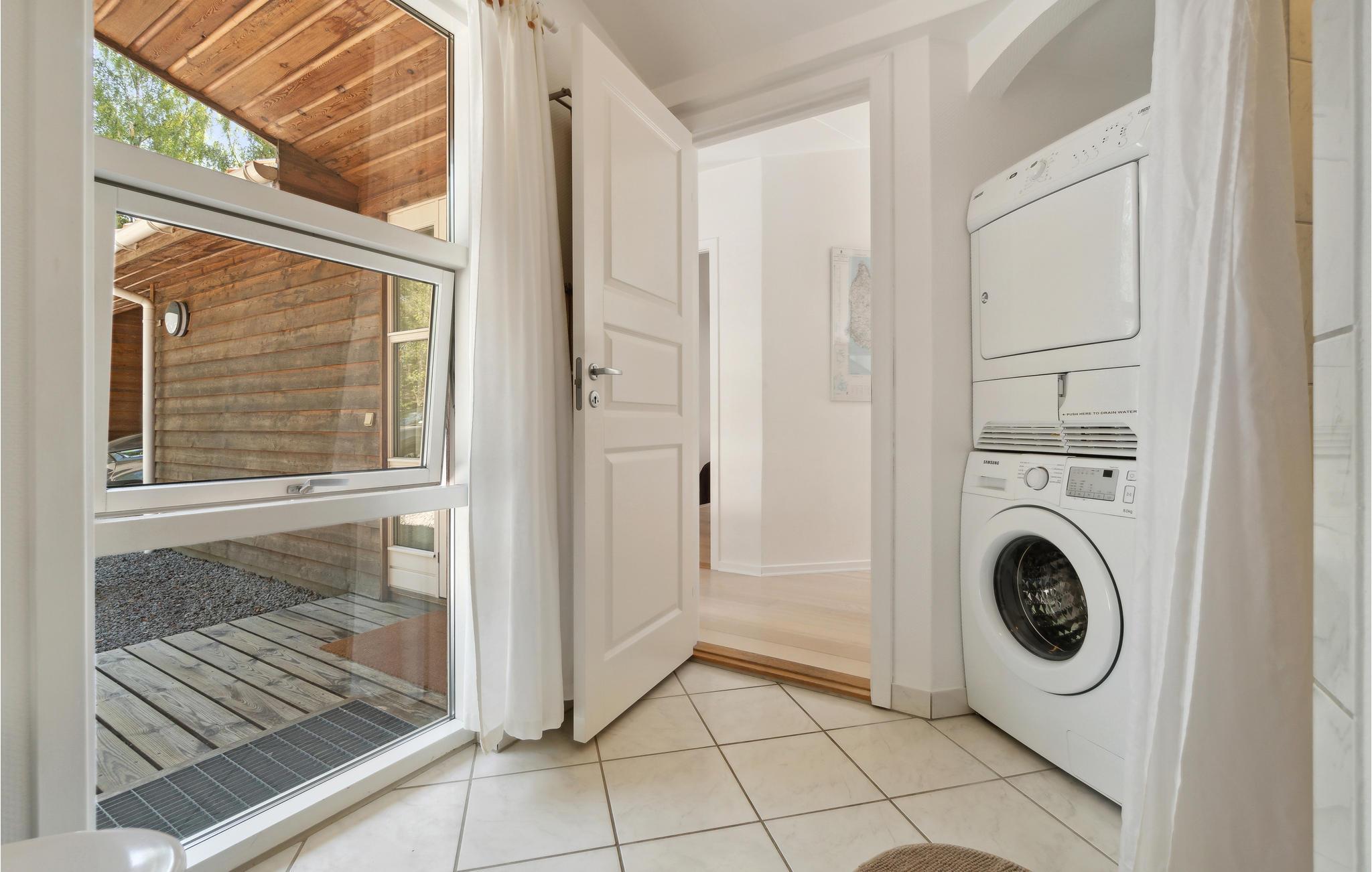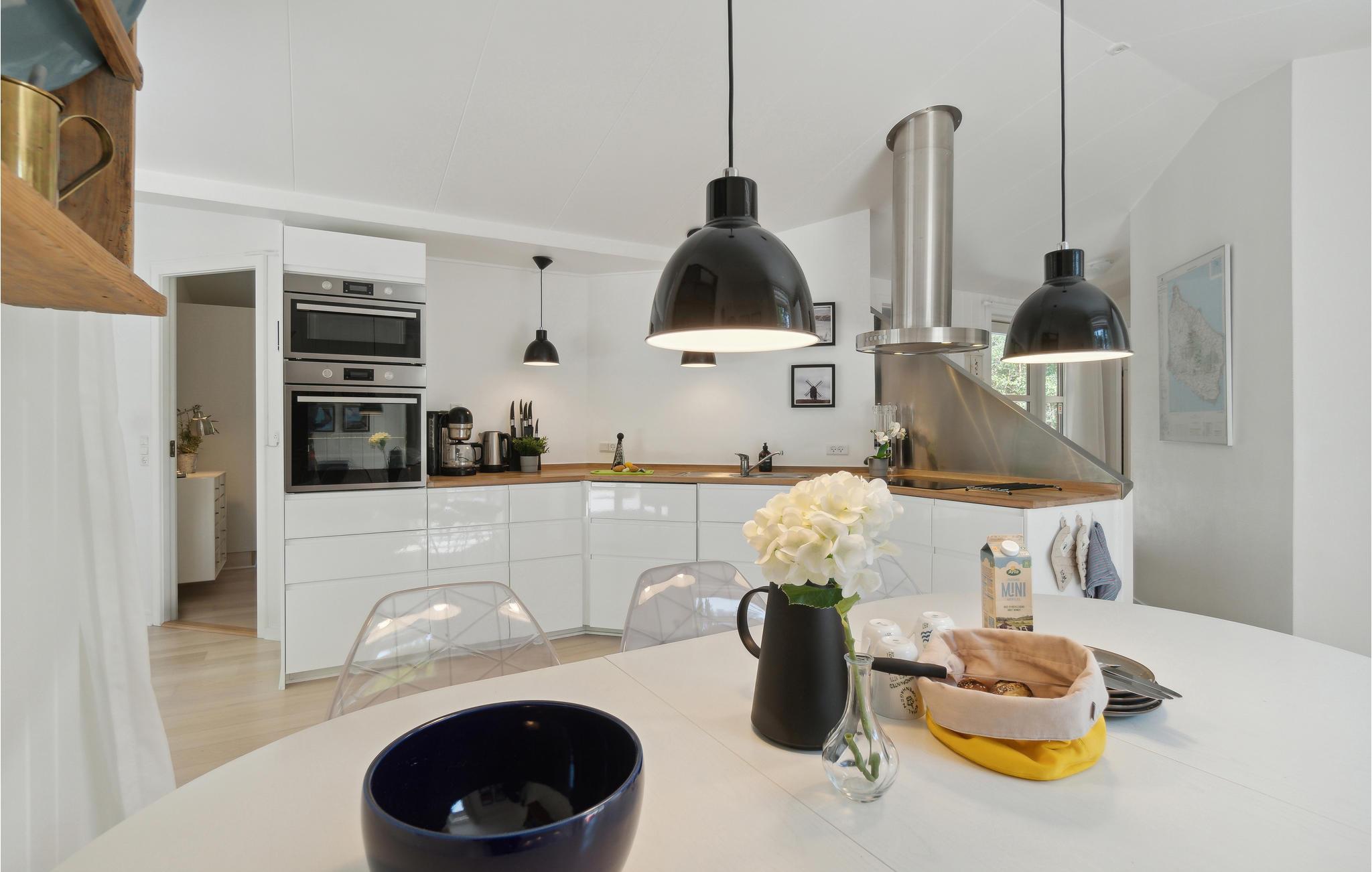 Das Haus ist modern und hell eingerichtet mit schönen Holzböden und großen Fenstern, die viel Licht hereinlassen und den Blick auf die grüne Umgebung eröffnen. Das geschmackvolle Wohnzimmer bildet den natürlichen Mittelpunkt des Hauses, wo Sie es sich gemütlich machen und fernsehen, Musik hören oder Spiele spielen können. Während der kalten Jahreszeit genießen Sie die Wärme und gemütliche Atmosphäre des Holzofens (Brennholz ist inklusive). In der schönen, gut ausgestatteten und offenen Küche lassen sich im Handumdrehen köstliche Gerichte zubereiten. Das große Badezimmer verfügt über eine komfortable Fußbodenheizung und ist mit einer Sauna bestens vorbereitet, Ihr Hort der Entspannung zu sein.