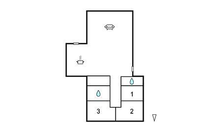 Badezimmer (nr. 2) - WC. Warmes und kaltes Wasser. Dusche