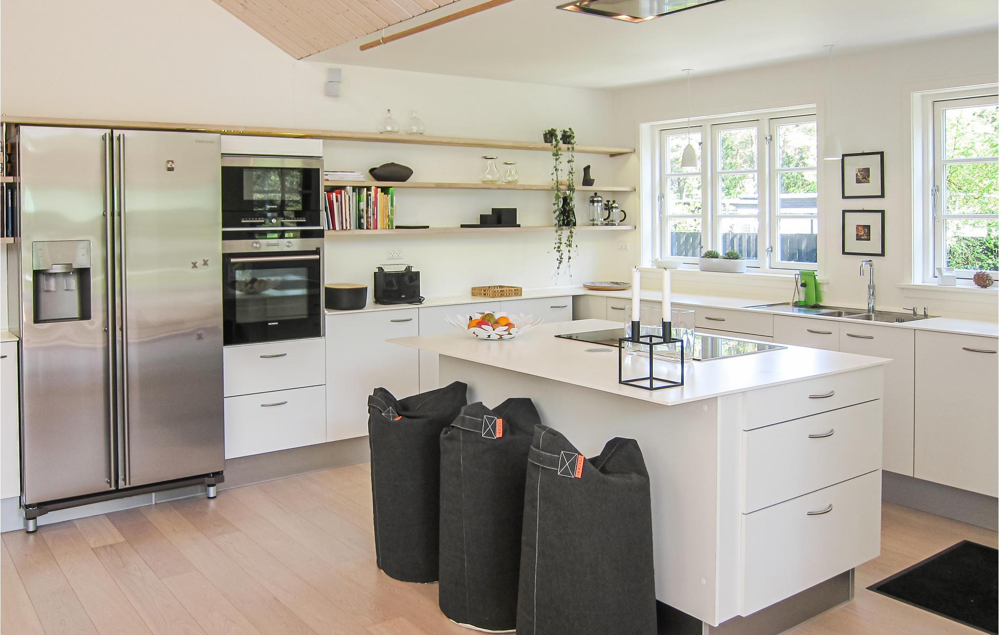 In idyllischer Lage am Waldrand und nur einen kurzen Spaziergang vom Strand entfernt begrüßt das helle und einladende Haus seine Gäste. Freuen Sie sich nach Ihren Erkundungen der Insel auf gemütliche Abende im heimeligen Wohnbereich. Lassen Sie den Blick durch die Fensterfront schweifen und plaudern Sie noch lange, während im Kaminofen die Flammen prasseln.