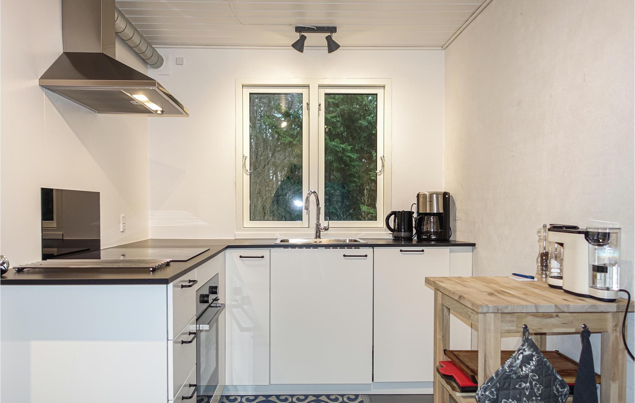 Dieses gemütliche Ferienhaus garantiert Ihnen beste Voraussatzungen einen wunderschönen und entspannten Urlaub. Sie werden viele angenehme Stunden im Wohnzimmer verbringen, wo große Fenster für ein schönes Licht und den Blick ins Grüne sorgen. Hier können Sie fernsehen, Radio oder Musik hören, Spiele spielen und in der kühleren Jahreszeit beim knisternden Ofenfeuer entspannen. Im Anschluss an das Wohnzimmers befindet sich die offene, gut ausgestattete Küche. Im Badezimmer gibt es eine komfortable Fußbodenheizung. Das Haus hat ein Nebengebäude, in dem Sie zwei gemütliche Schlafplätze finden. Es gibt auch ein anderes Nebengebäude mit Waschmaschine. Eine Ladestation für Elektroautos ist vorhanden.
