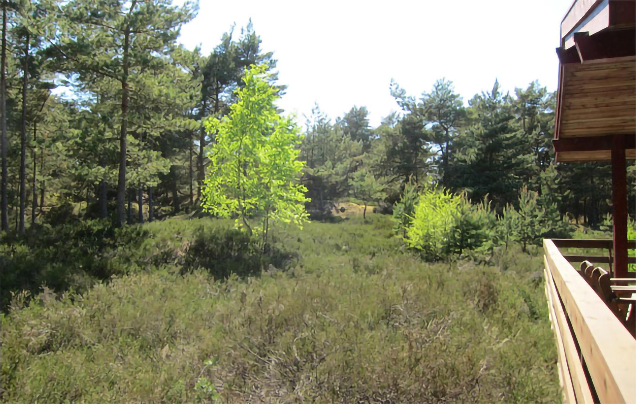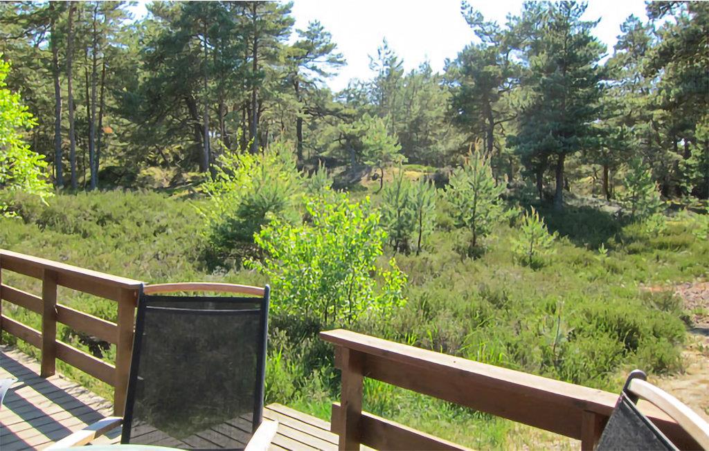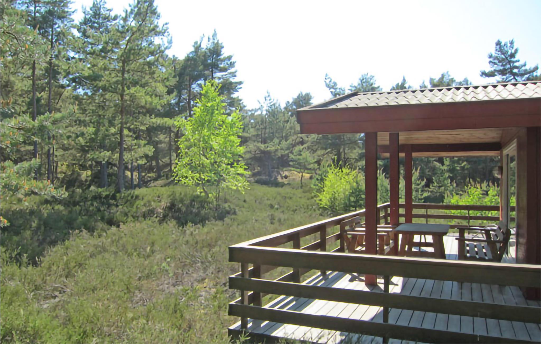 Nettes Holzhaus in ruhiger Lage auf einem schönen, hügeligen und bewaldeten Naturgrundstück. Das Haus ist dicht an einem Naturschutzgebiet mit Dünen gelegen in der Nähe des schönen Sandstrandes von Dueodde.