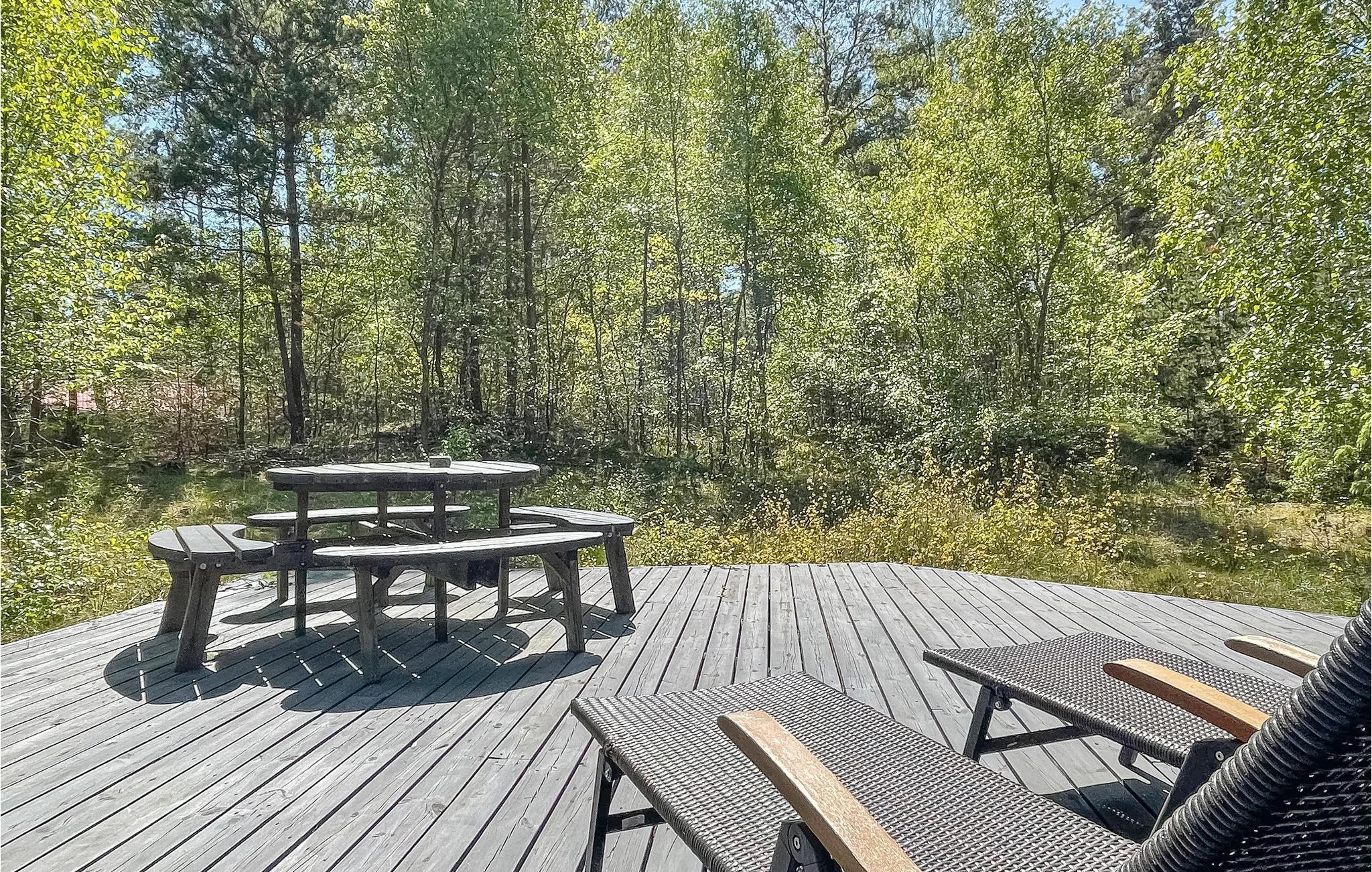 Das Haus verfügt über eine große, sonnige und teilüberdachte Holzterrasse mit Outdoormöbeln wie Sonnenliegen und einen Grill, damit Sie auch im Freien Gerichte zubereiten können. Hier werden Sie womöglich den Großteil Ihrer Mahlzeiten einnehmen und stundenlang in der Sonne sitzen oder liegen. Für Ihr Auto steht ein Carport zur Verfügung.