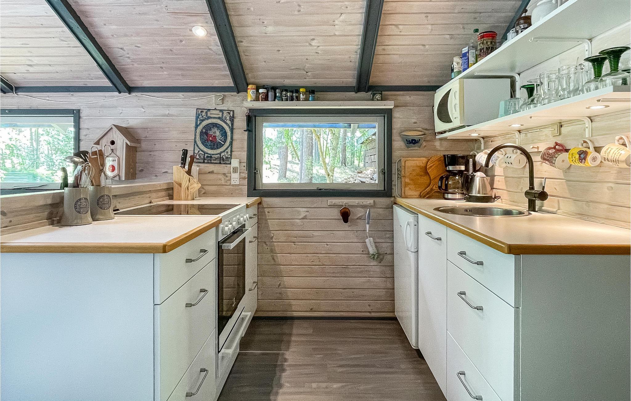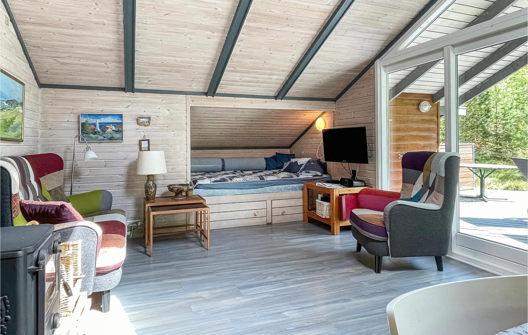 Willkommen in diesem charmanten, hellen Ferienhaus, das Sie mit seinen Holzböden, -wänden und -decken in Kombination mit der offenen Küche mit einer großzügigen und gemütlichen Atmosphäre empfängt. Im geschmackvoll eingerichteten Wohnzimmer können Sie fernsehen, Radio oder Musik hören, sich am Esstisch versammeln und im Winter die Wärme des Holzofens genießen (Brennholz inklusive). Die offene, gut ausgestattete Küche ist mit dem Wohnzimmer verbunden, sodass das Kochen immer in Gesellschaft geschehen kann. Darüber hinaus befinden sich ein schönes Badezimmer und zwei Schlafzimmer im Haus.