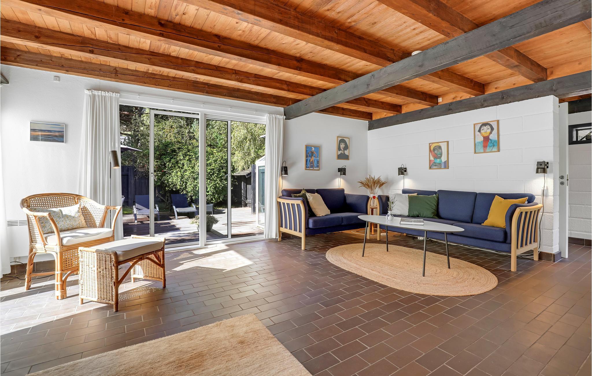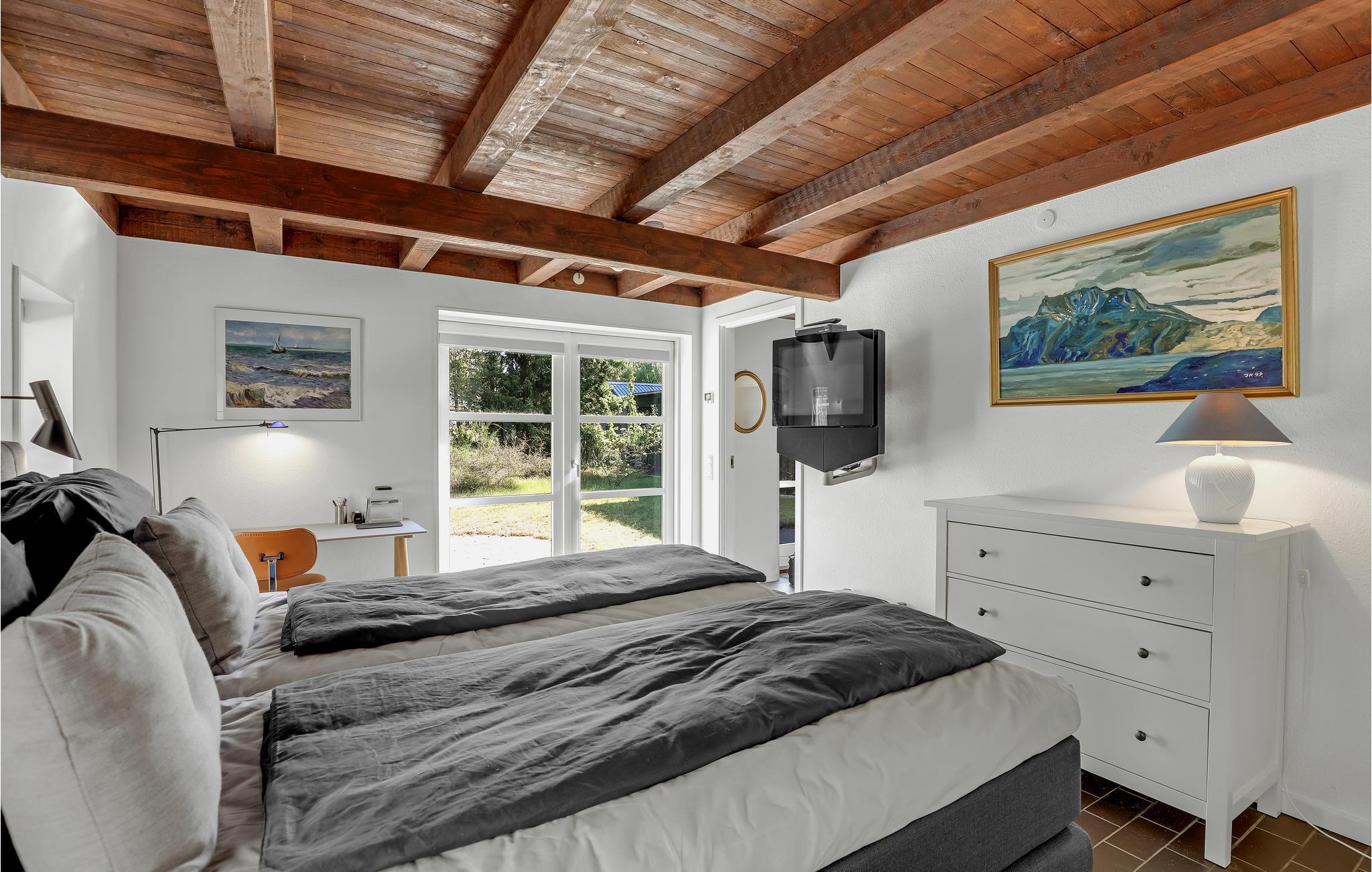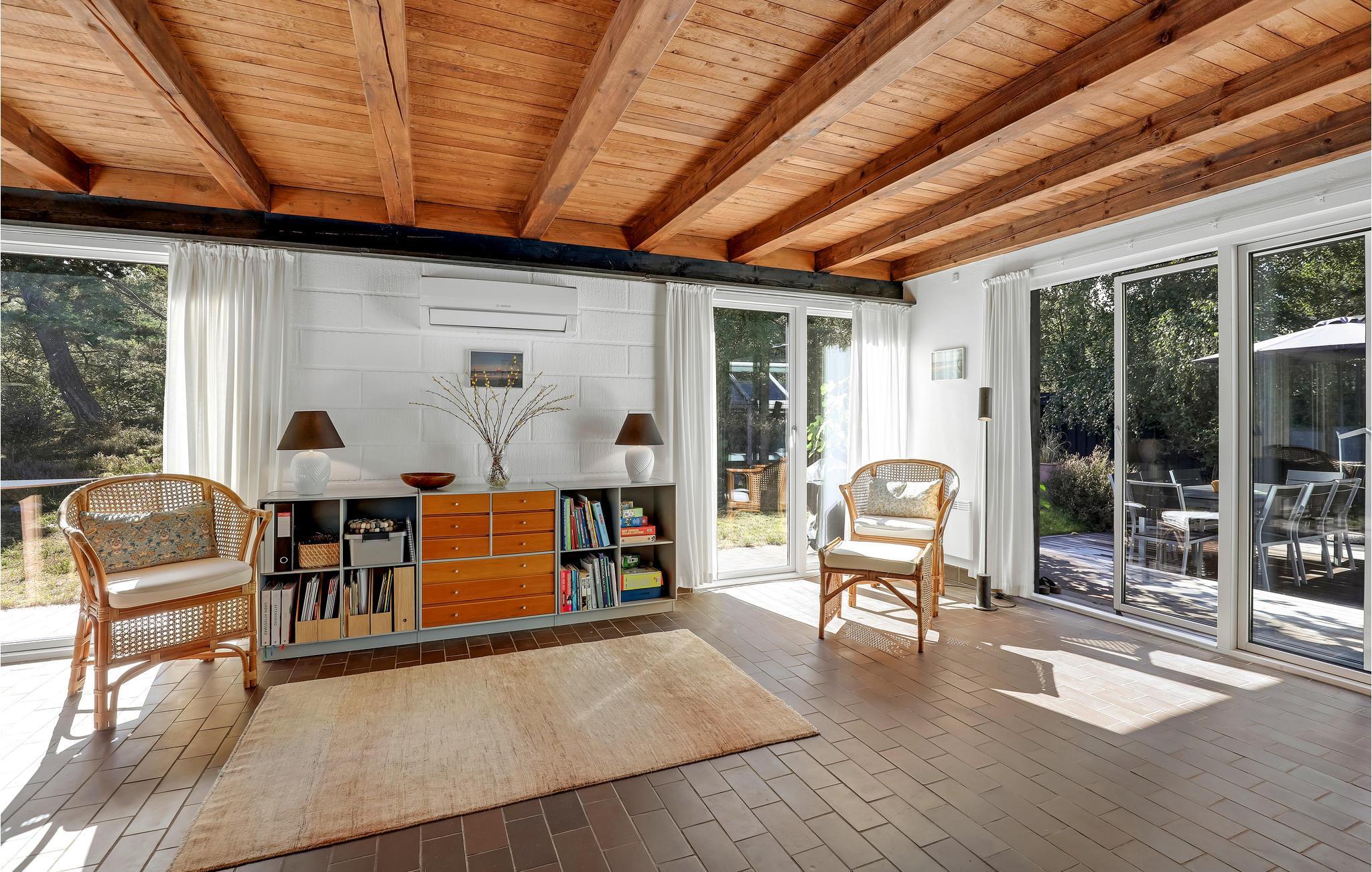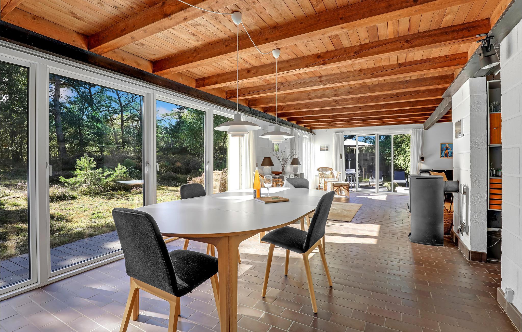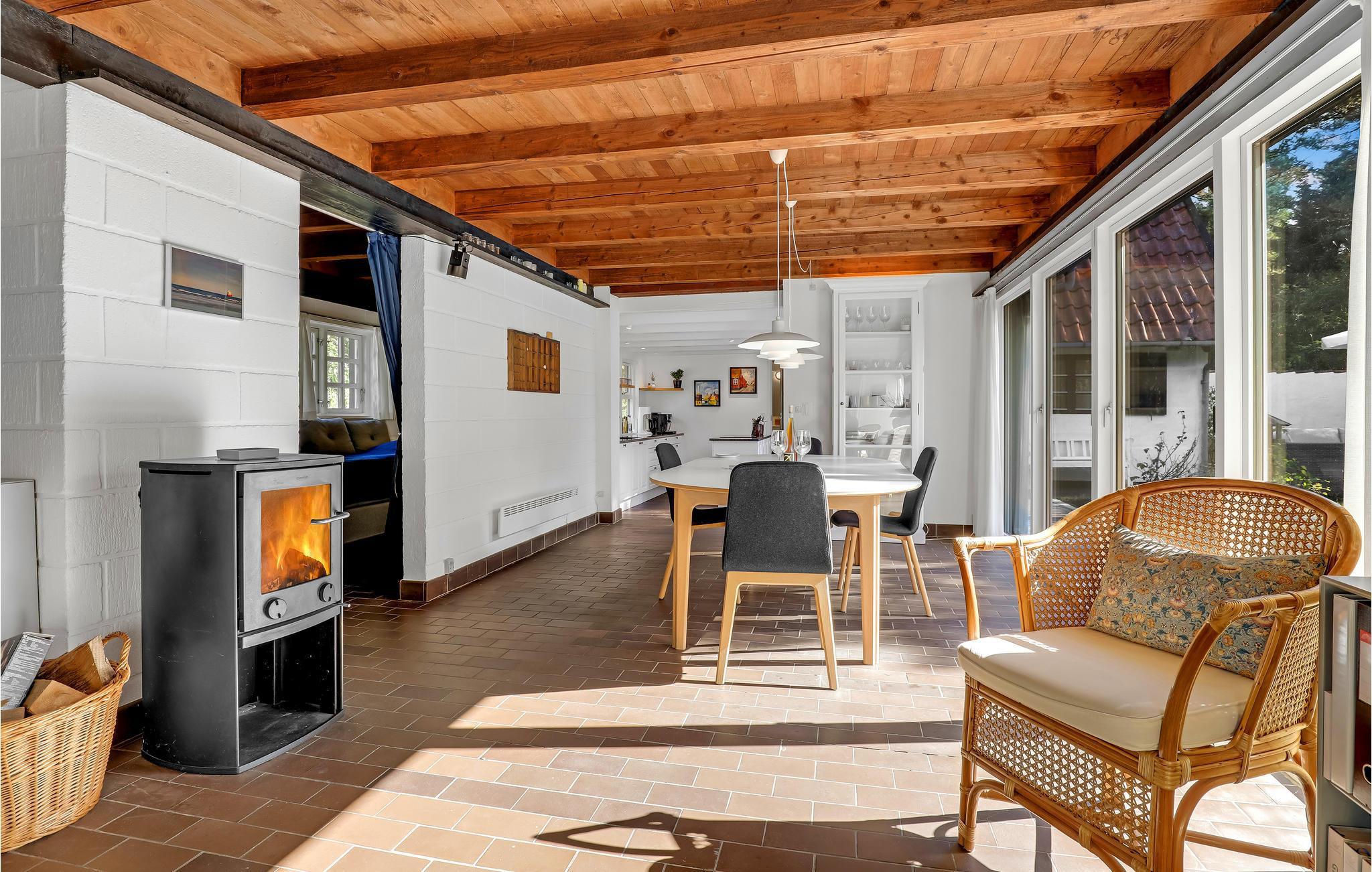 Willkommen in einem Ferienhaus der Extraklasse mit moderner Einrichtung und hochwertigen Möbeln. Hier empfängt Sie eine schöne, offene und gut ausgestattete Küche, in der Sie im Handumdrehen köstliche Gerichte zubereiten können. Im gemütlichen, großen Wohnzimmer können Sie es sich so richtig bequem machen, Filme schauen und im Winter am Ofenherd die Wärme und die gemütliche Atmosphäre genießen. Im neueren Teil des Hauses (mit Fußbodenheizung) befindet sich ein Schlafzimmer mit zwei Einzelbetten und Zugang zur Terrasse sowie ein großes Schlafzimmer mit zwei Betten, einem Arbeitsbereich, TV (nur deutsche Sender) und Zugang zur Terrasse. Im 1. Stock befindet sich ein weiteres gemütliches Schlafzimmer mit zwei Einzelbetten. Das Haus verfügt über zwei Badezimmer mit Fußbodenheizung, eines davon mit Waschmaschine, Trockner und Badewanne.