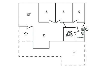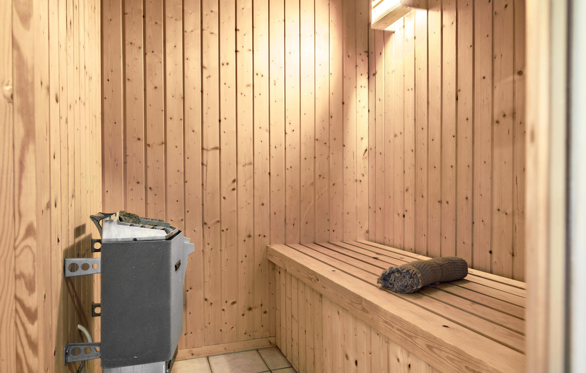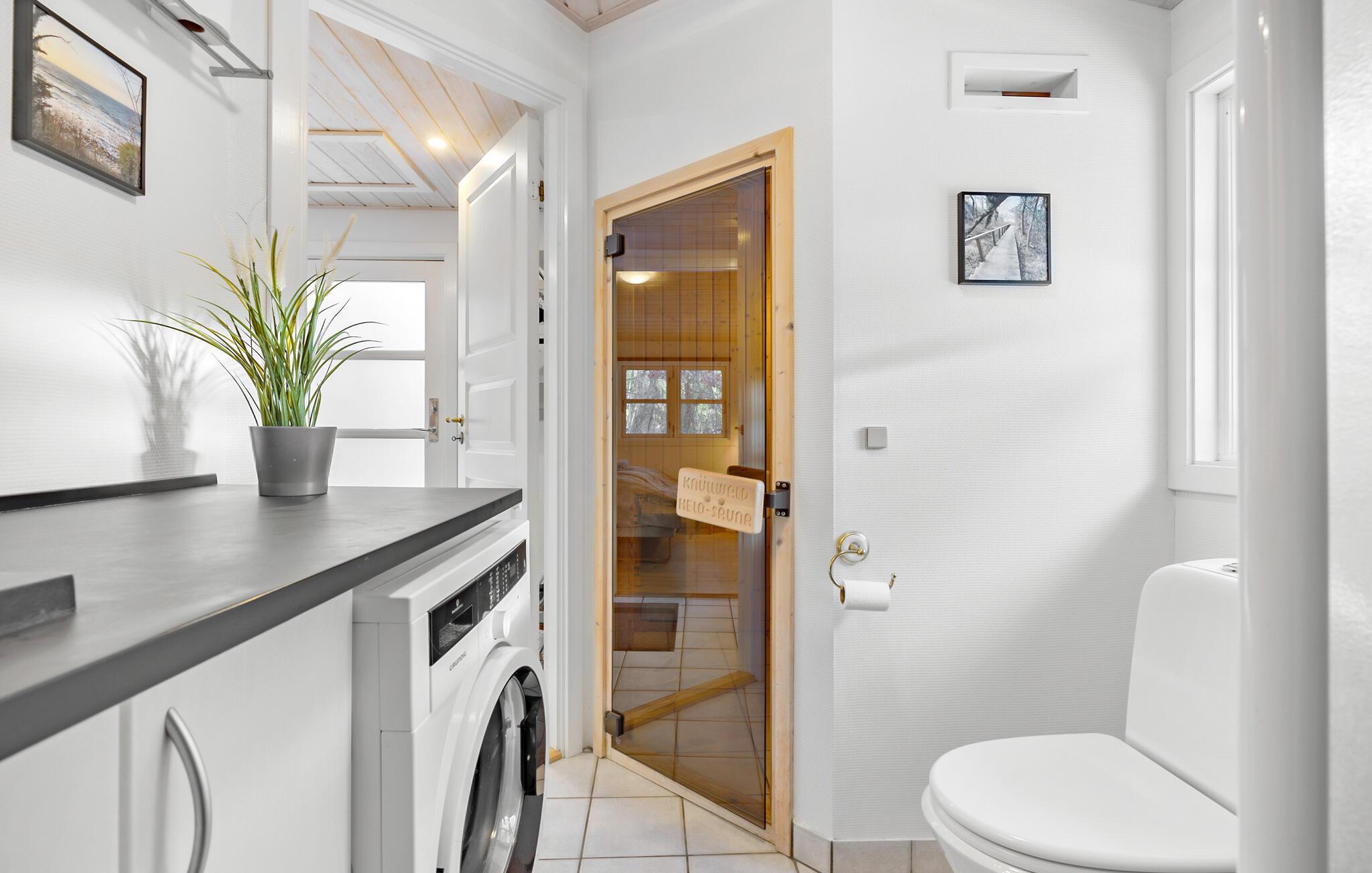 Im schönen Wohnzimmer können Sie Filme schauen, Radio oder Musik hören, Karten spielen und sich in Unterhaltungen vertiefen. Das Haus verfügt über eine große, helle und schöne offene Küche mit Essbereich neben einem Holzofen, der in der kühleren Jahreszeit für eine gemütliche Atmosphäre sorgt. Das schöne Badezimmer des Hauses verfügt über eine Waschmaschine, Fußbodenheizung und eine Sauna für relaxierende Momente nach einem aktiven Urlaubstag.