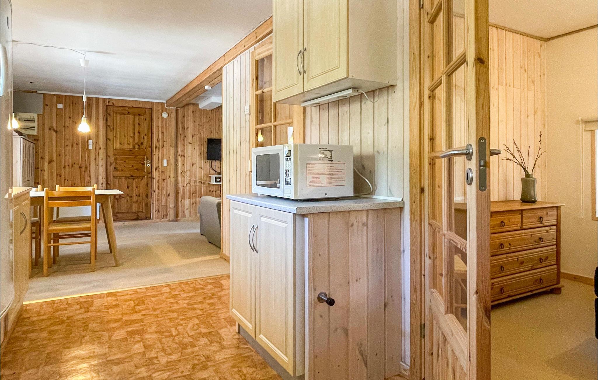 Willkommen in dieser feinen Wohnung mit viel Holzbauweise, was eine wirklich gemütliche Atmosphäre schafft. Das Herzstück der Wohnung bildet das ansprechend eingerichtete Wohnzimmer mit Essecke, Schlafcouch (140 cm) und offener Küche, wo man sich komplett entspannen und fernsehen, Radio/Musik hören, Spiele spielen oder sich unterhalten kann.