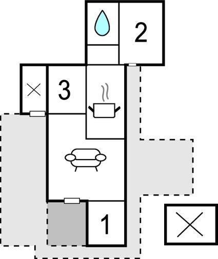 Badezimmer 5m2 (nr. 1) - WC. Warmes und kaltes Wasser. Dusche