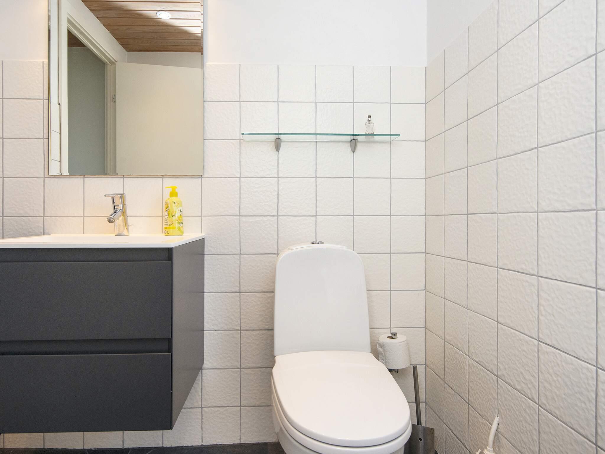 Insgesamt gibt es vier Schlafzimmer und zwei Bäder; in das eine Bad gelangt man nur durch das eine Schlafzimmer. Das Haus ist praktisch mit u.a. einer gut ausgestatteten Küche eingerichtet und besitzt zwei offene und eine überdachte Terrassenfläche mit Blick zum Meer.