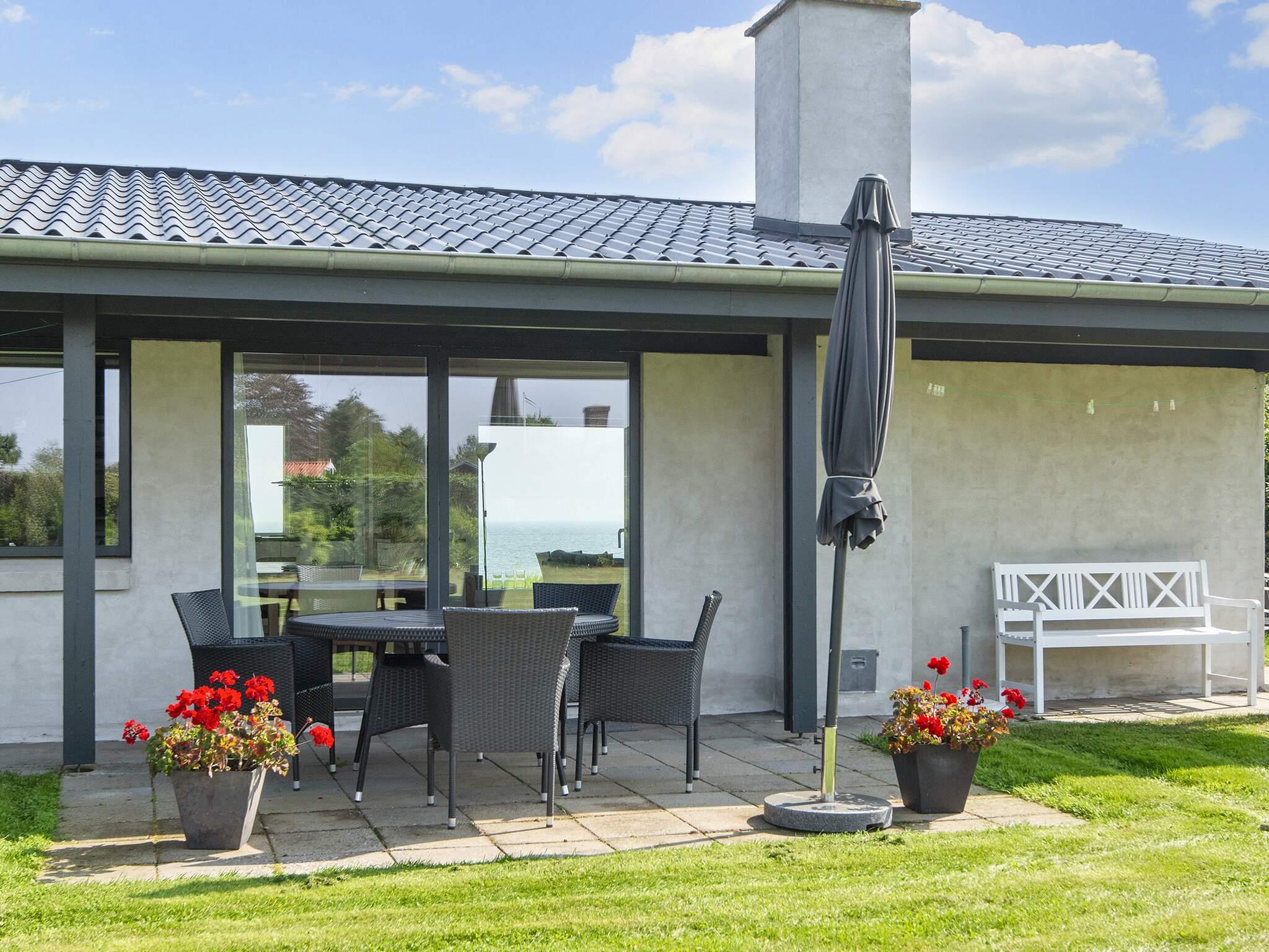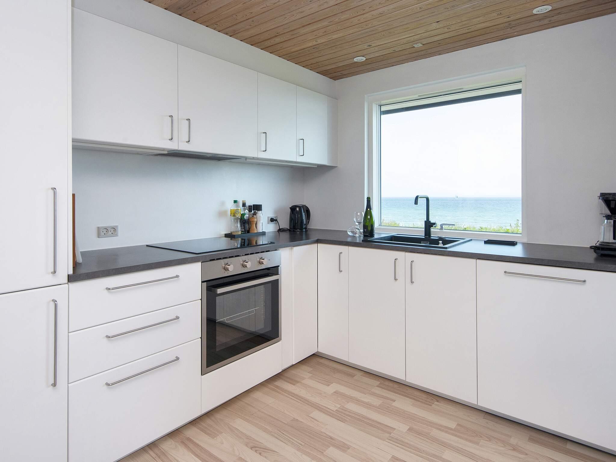 Dieses Ferienhaus liegt in der ersten Reihe zum Badestrand bei Dyngby Strand und aufgrund seiner erhöhten Lage hat man einen fantastischen Panoramablick auf die Bucht von Århus. Auch vom Wohnzimmer, wo es große Panoramafenster gibt, kann man diese Aussicht genießen.