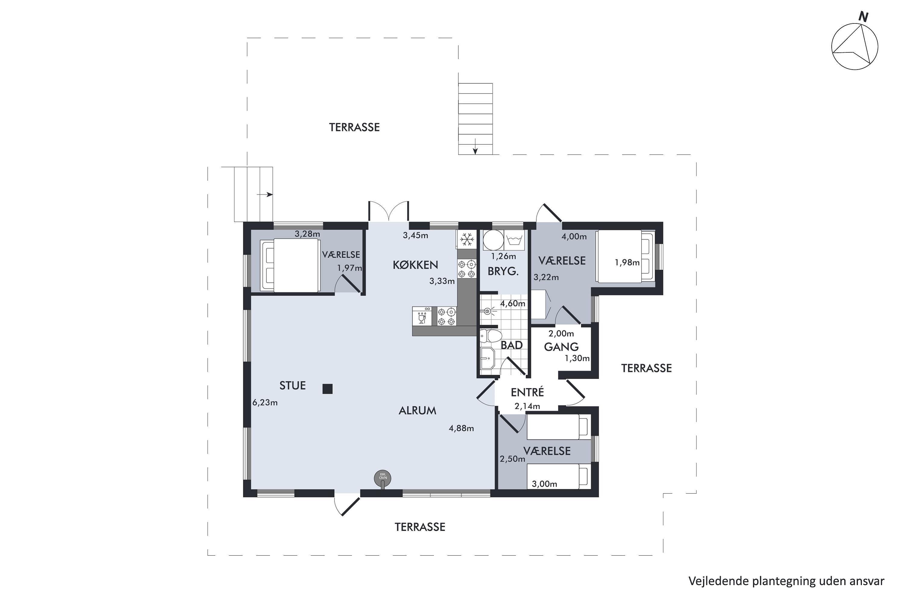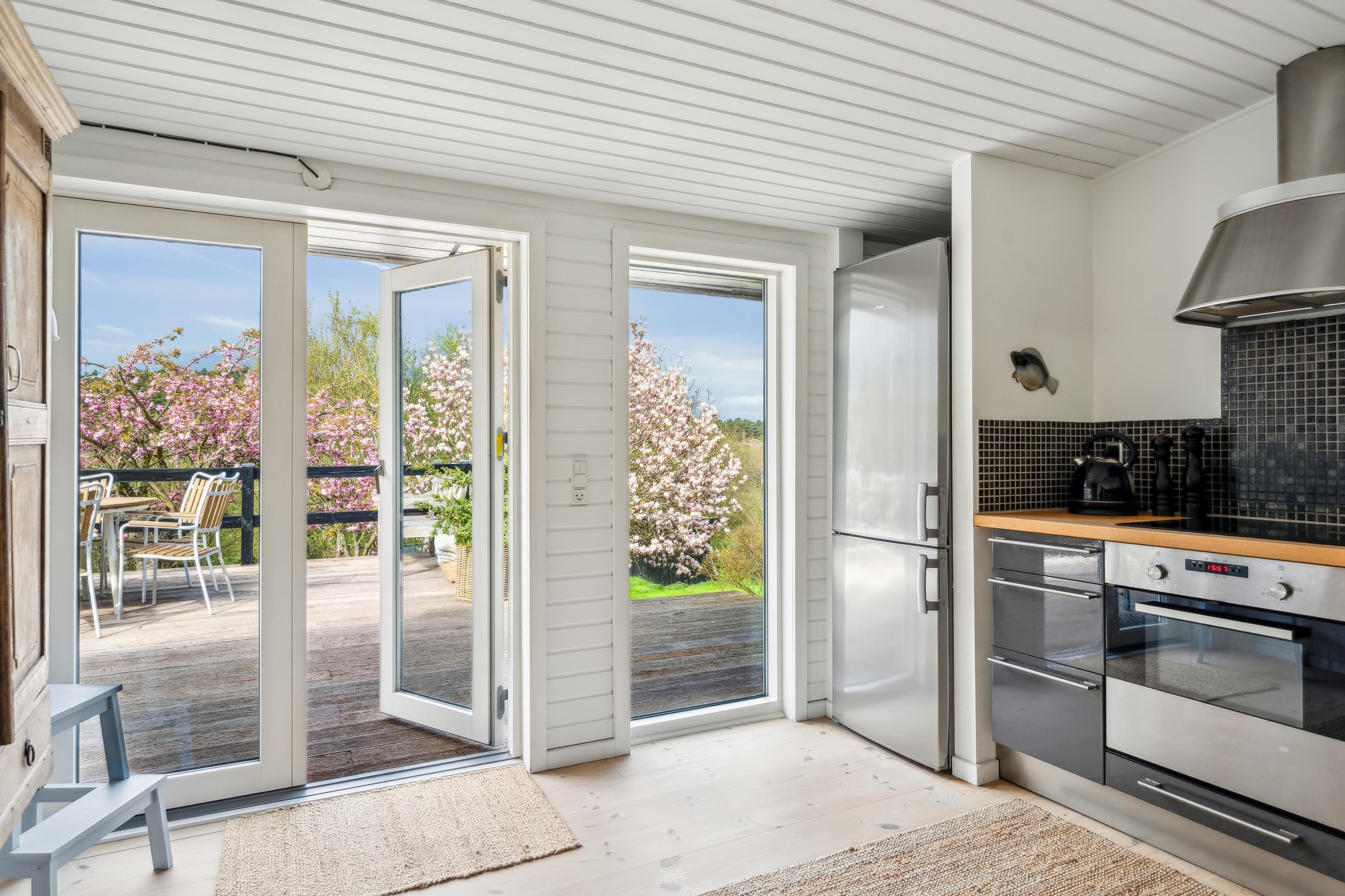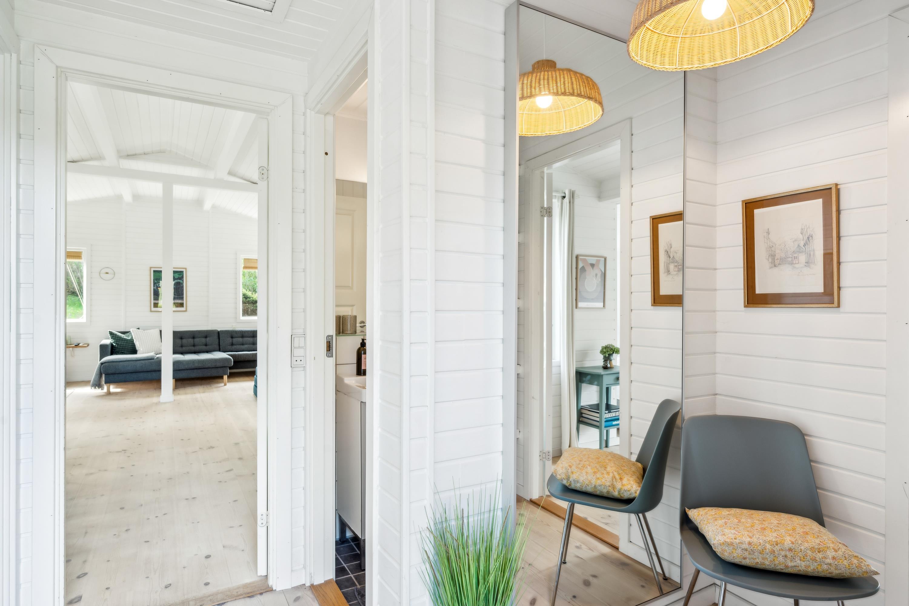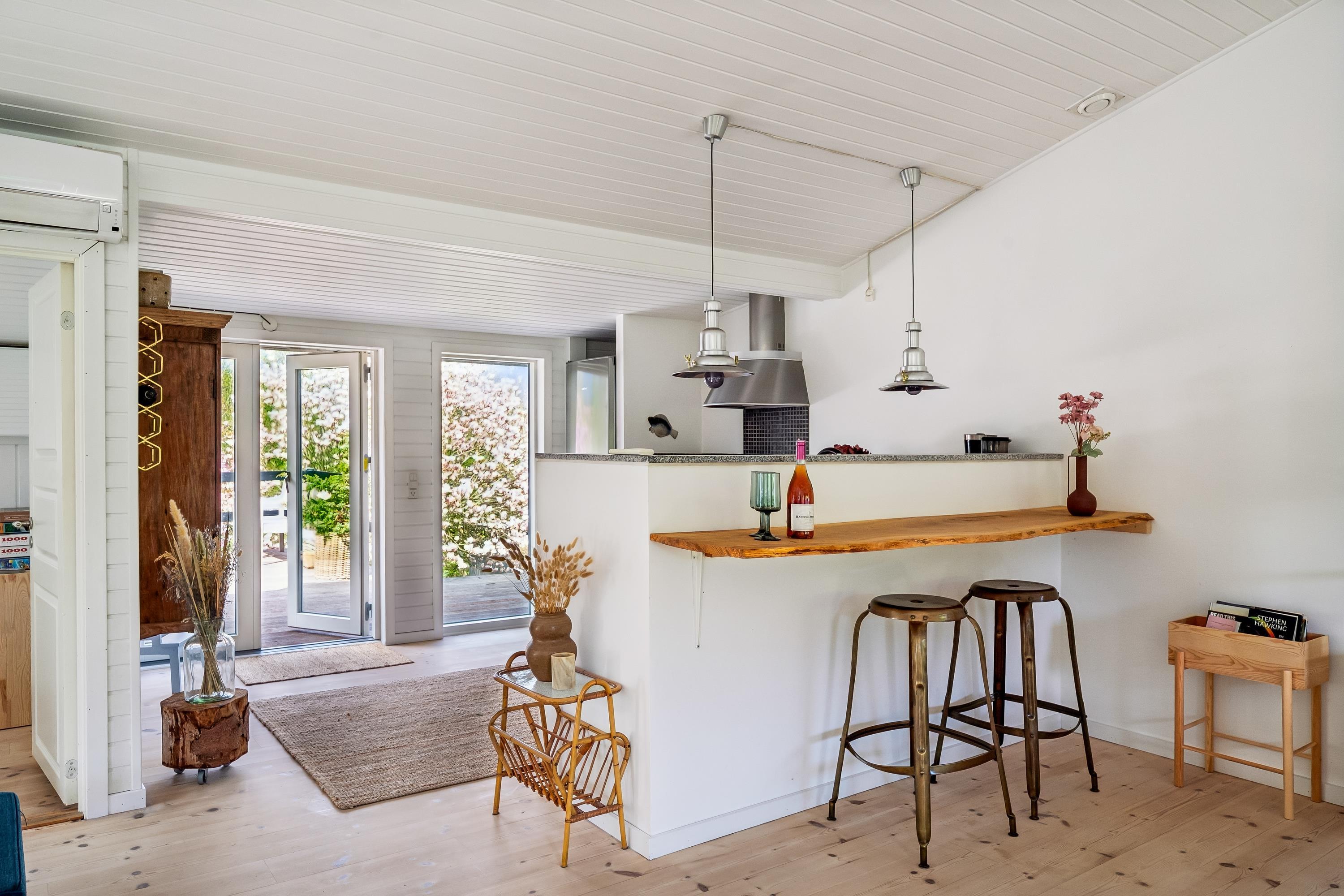 Just a 10-minute drive from Ebeltoft, you'll find this well-maintained and charming holiday home. The house features a bright and spacious living room, comfortably furnished with quality furniture. Adjacent to the living room is a stylish kitchen equipped with a dishwasher, and from here, you have direct access to a large, lovely terrace with garden furniture. The sleeping arrangements include three cosy bedrooms – two with double beds and one with two single beds. The bathroom is nice and functional with a shower and access to a washing machine and tumble dryer.