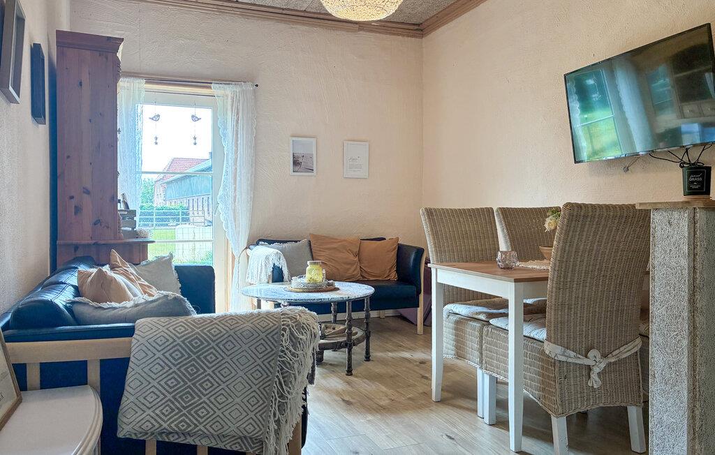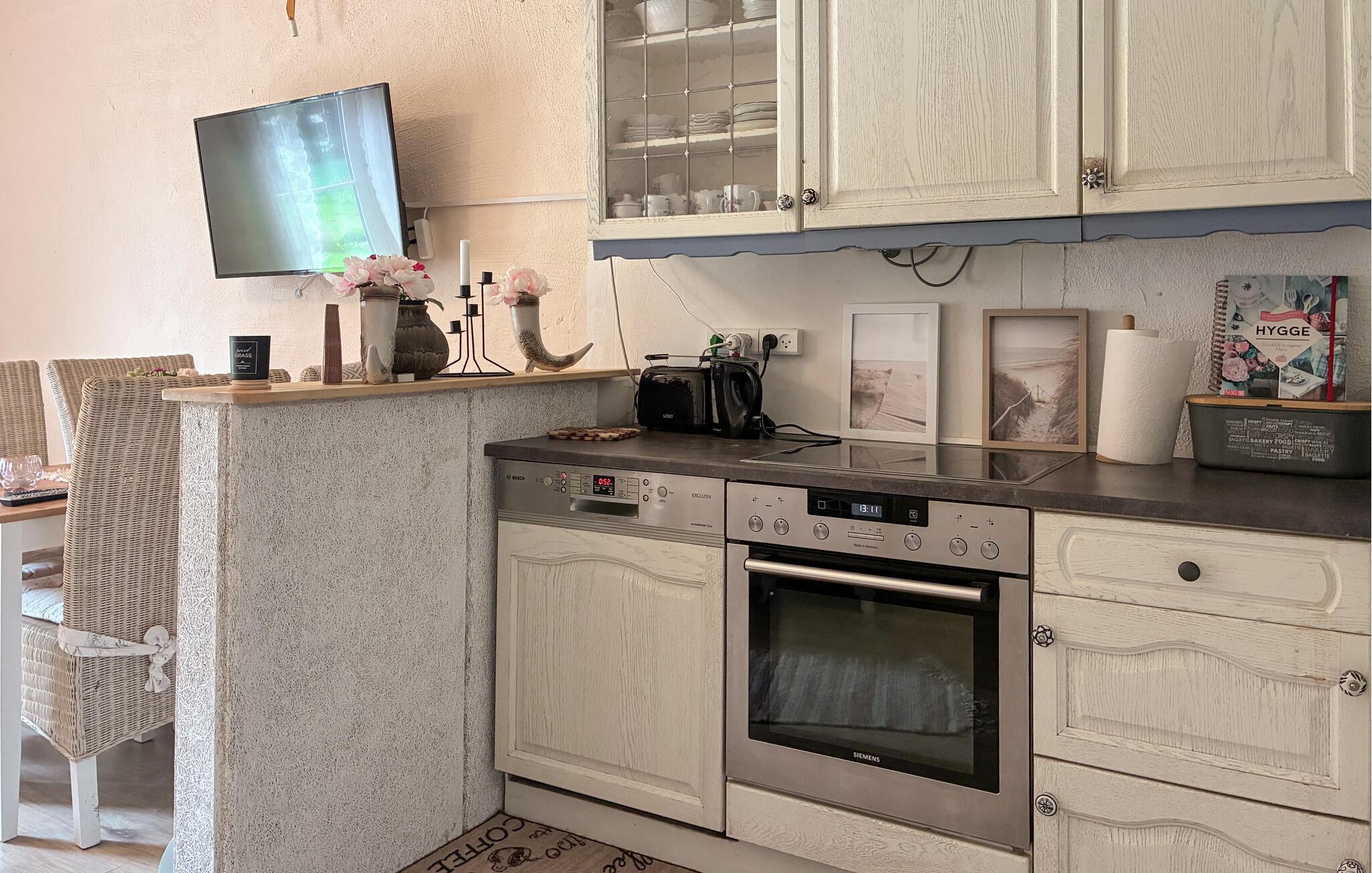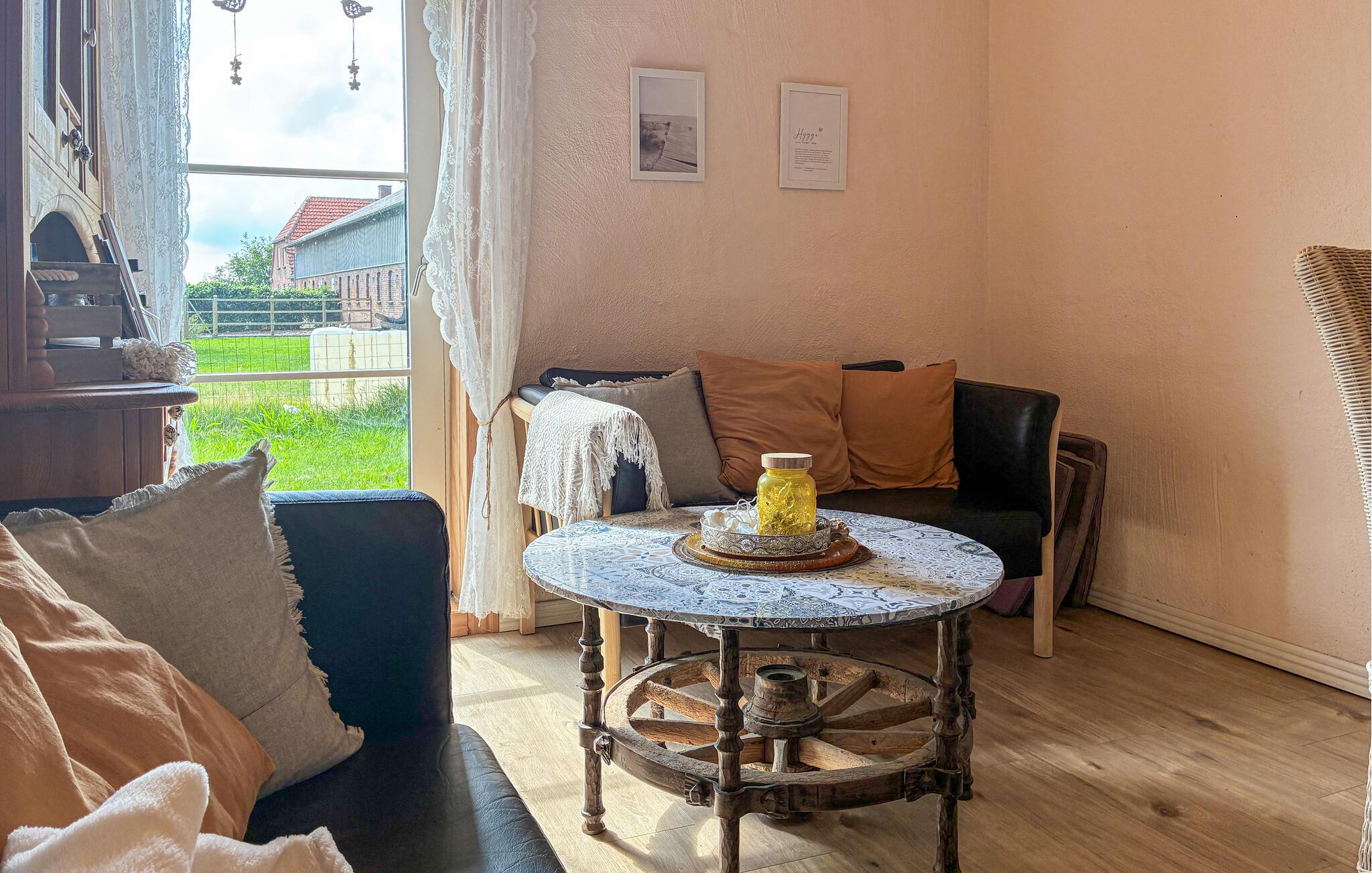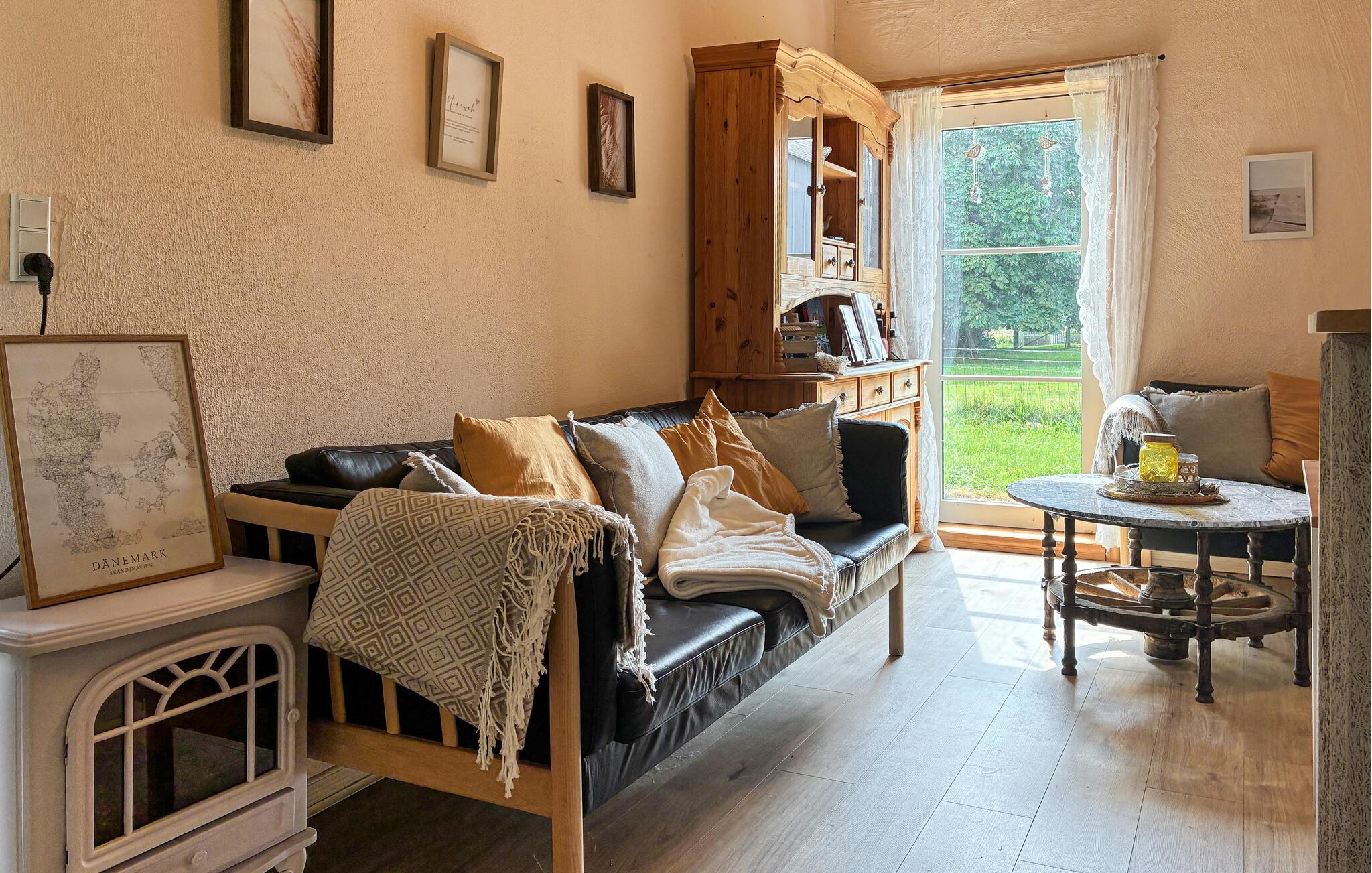 Dieses gemütliche Haus ist wie geschaffen für eine entspannte Auszeit vom Alltag. Bequeme Sofas, ein rustikaler Esstisch und eine kleine Küche schaffen eine Atmosphäre, in der Sie schnell abschalten können. Egal ob Sie entspannt Kaffee trinken oder eine leckere Mahlzeit zubereiten, hier bestimmen Sie das Tempo Ihres Tages.