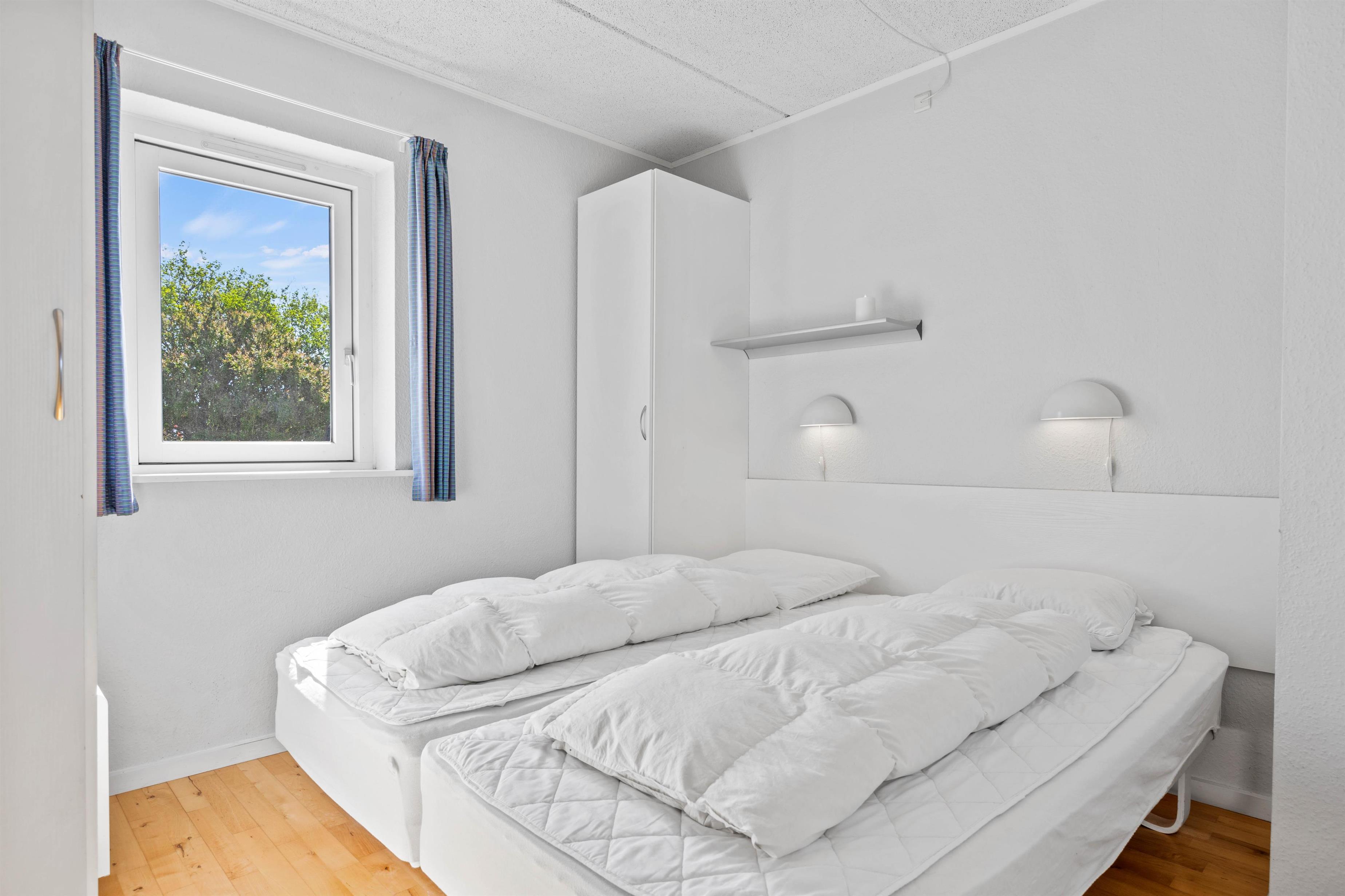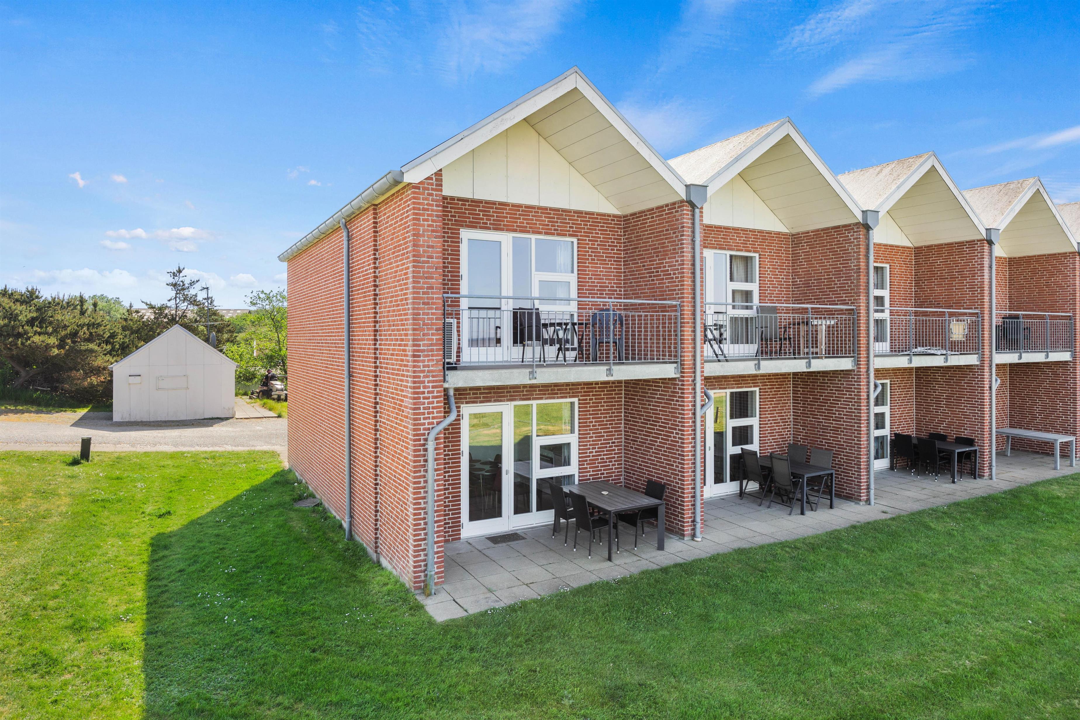 This holiday apartment, perfectly situated on the Danish West Coast, offers a practical layout. On the ground floor, you'll find the kitchen and dining area. Thanks to the dishwasher, you won't need to worry about washing up. There's also a comfortable double bedroom and one of the two shower rooms with underfloor heating. The second double bedroom and bathroom are located on the upper floor.