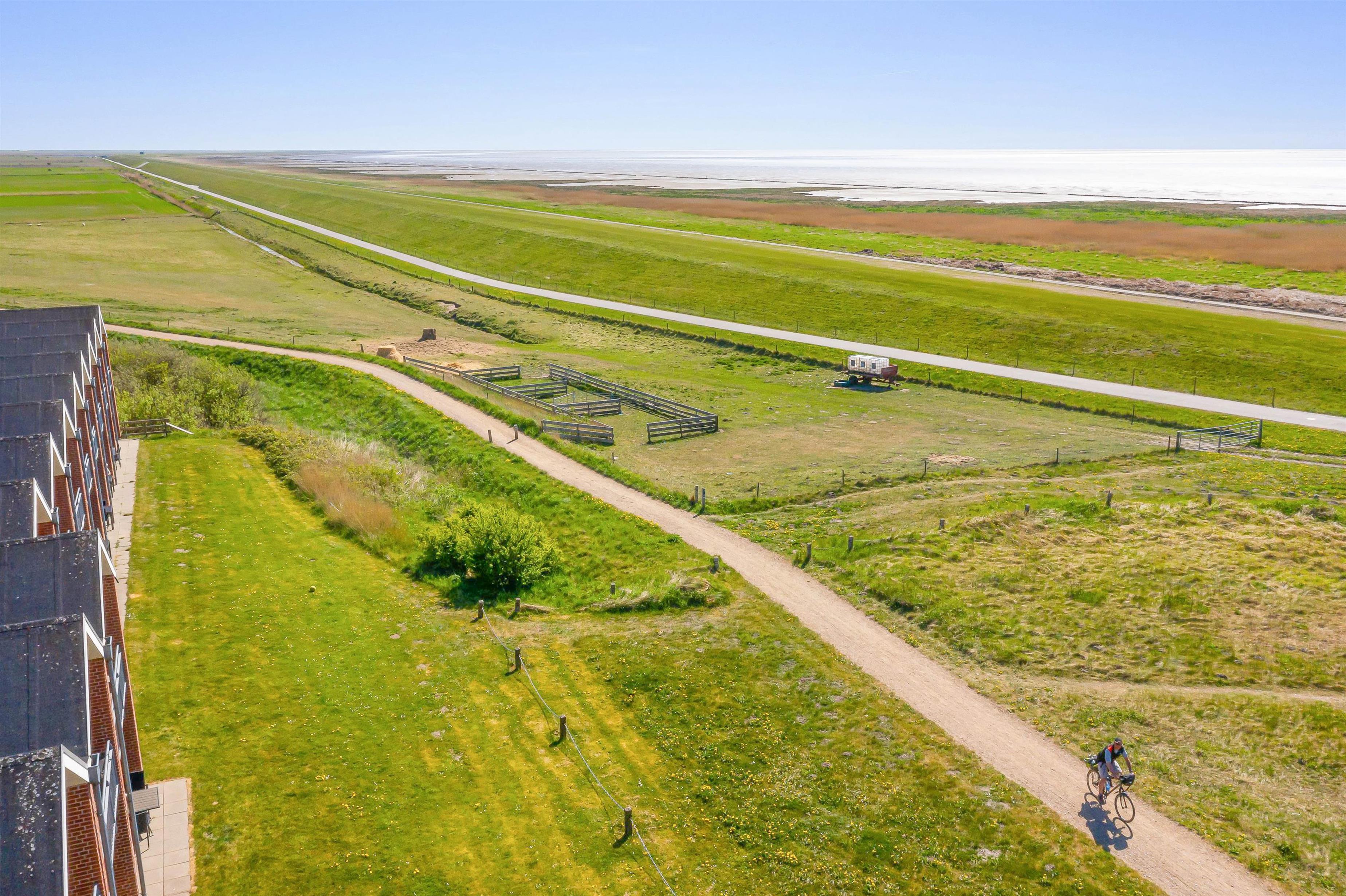 Enjoy fantastic views over the Wadden Sea, grasslands and marshes. The water is just 50 metres away, making this the perfect spot for scenic coastal walks.