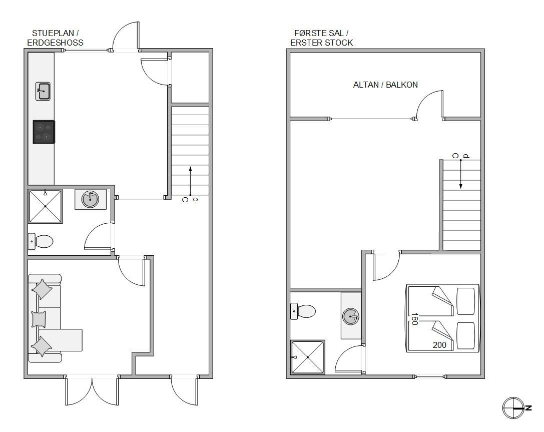There's a bathroom on each floor for added convenience. Both well-maintained bathrooms feature underfloor heating and are equipped with showers. German television channels and Wi-Fi are available throughout.