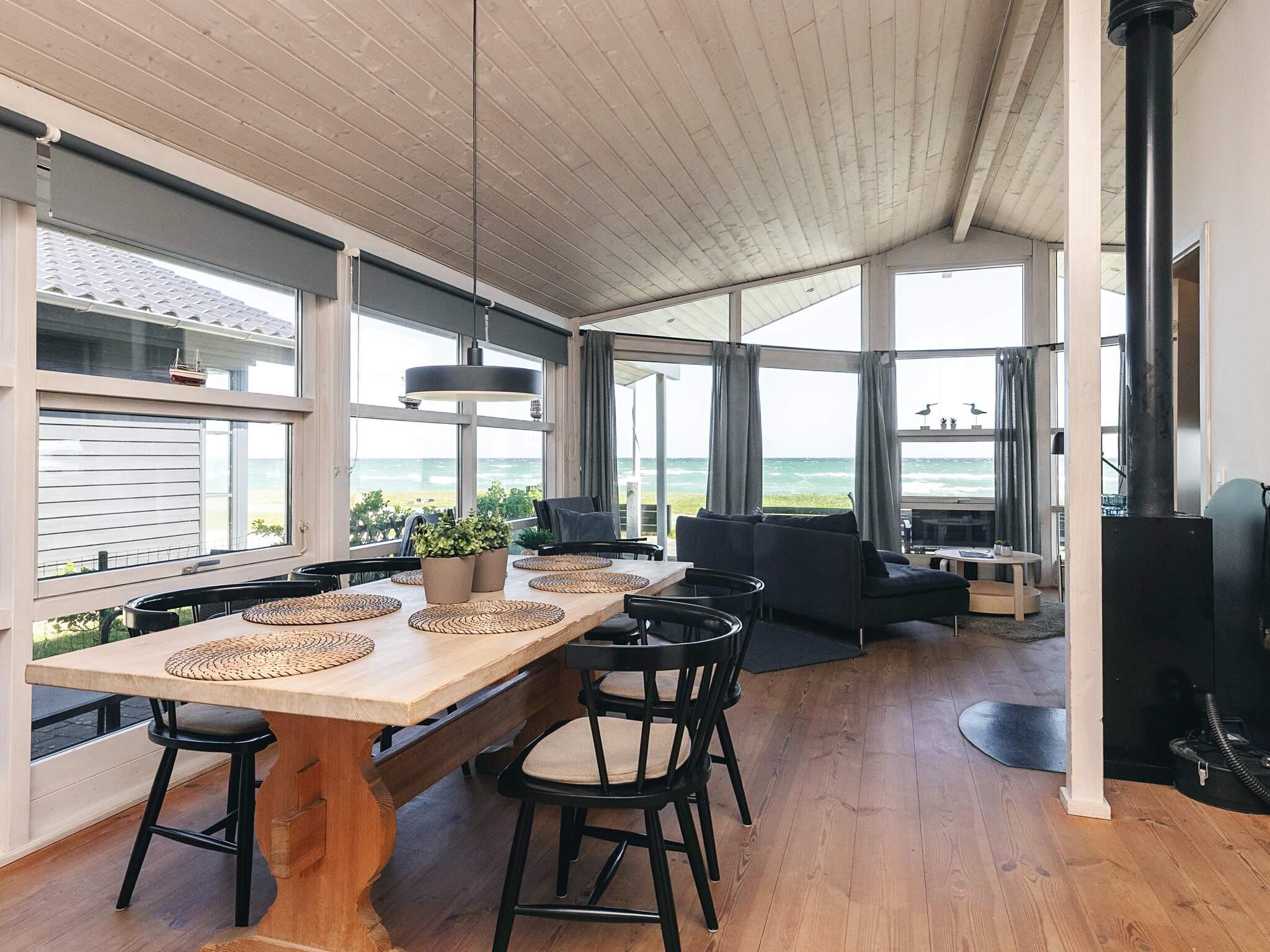 Auf einem Strandgrundstück direkt am Strand steht dieses Ferienhaus mit schöner Aussicht auf das Wasser. Eine bessere Lage gibt es nicht. Beim Bau und bei der Einrichtung wurde Wert auf viel Licht und Helligkeit gelegt. Zum Haus gehören eine offene und überdachte Terrasse, eine zum Wasser hin, und eine ungestört hinter dem Haus. Das Bad verfügt über Fußbodenheizung und Dusche. Auf dem Grundstück sind Spielgeräte für die kleinen Gäste aufgestellt.