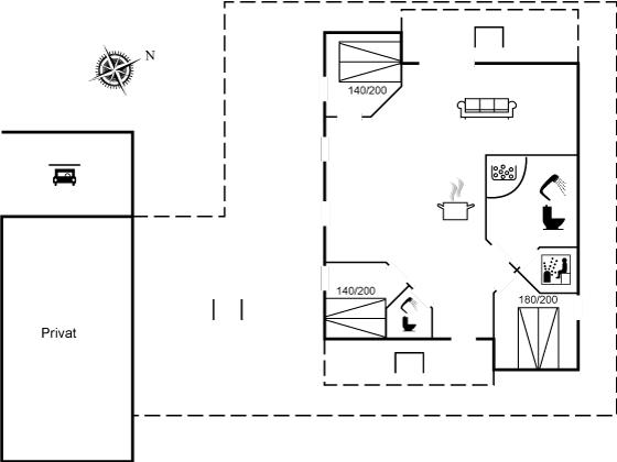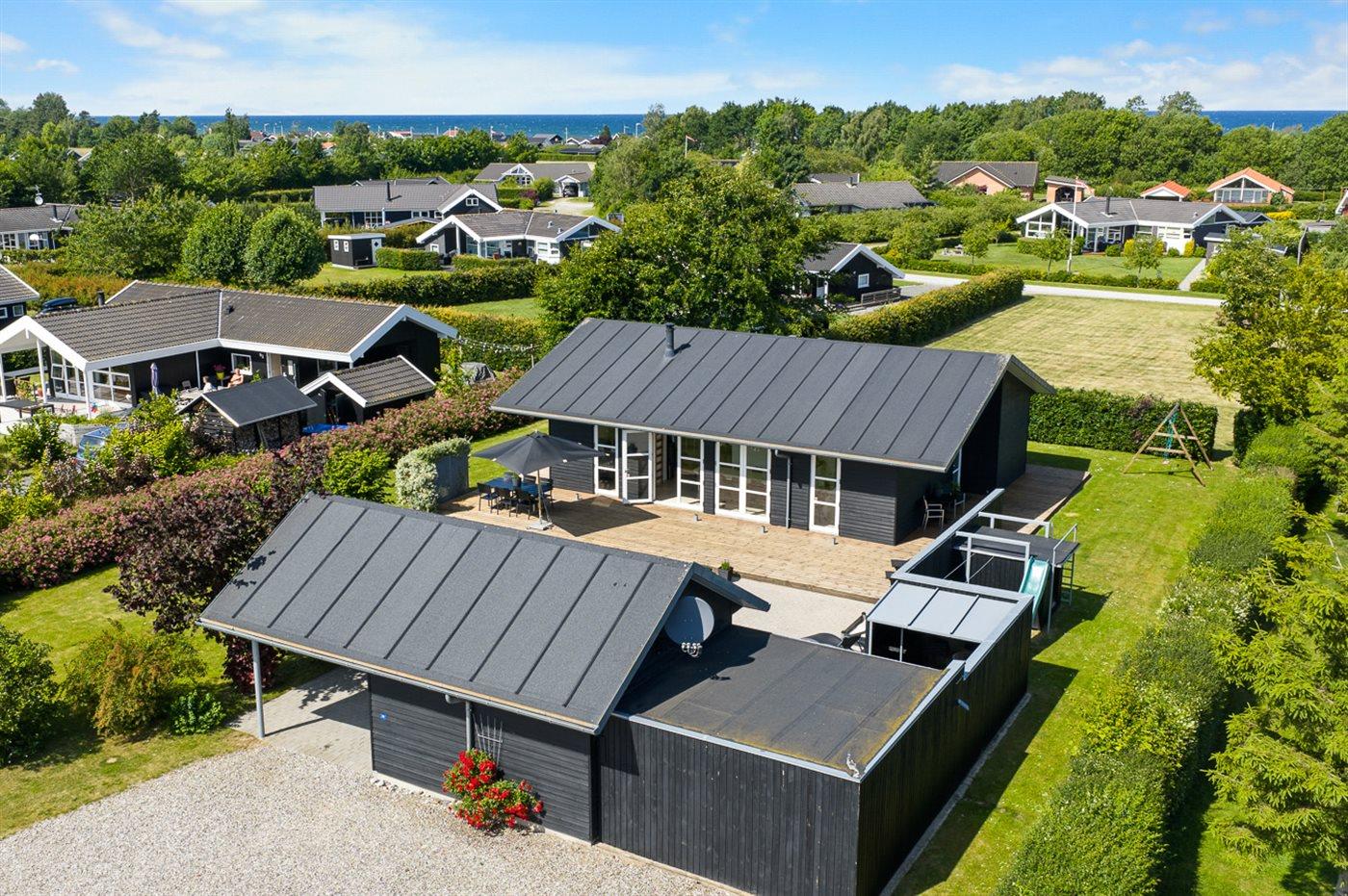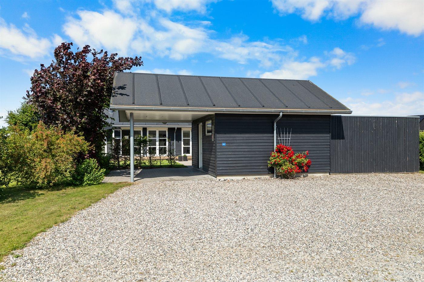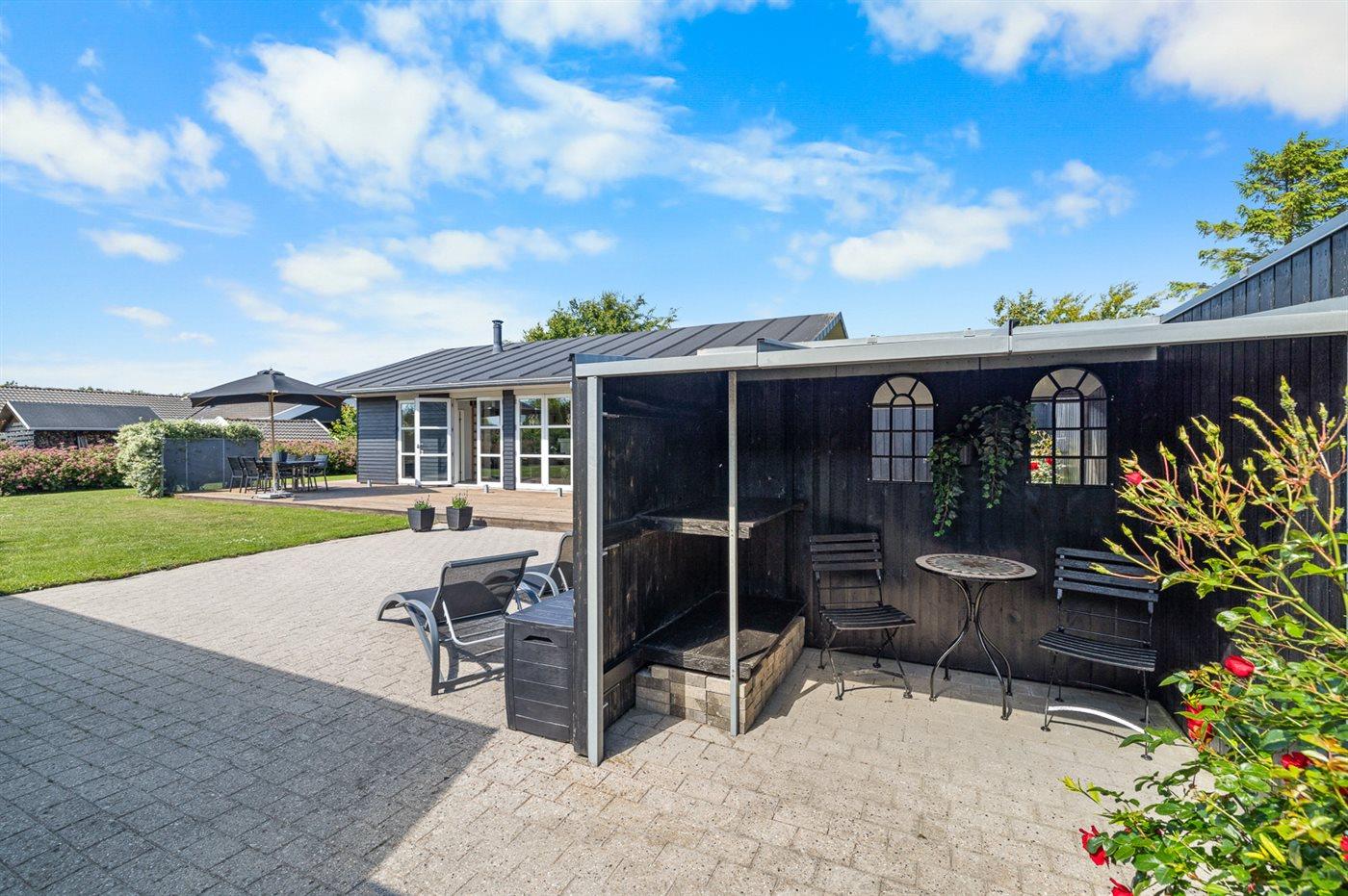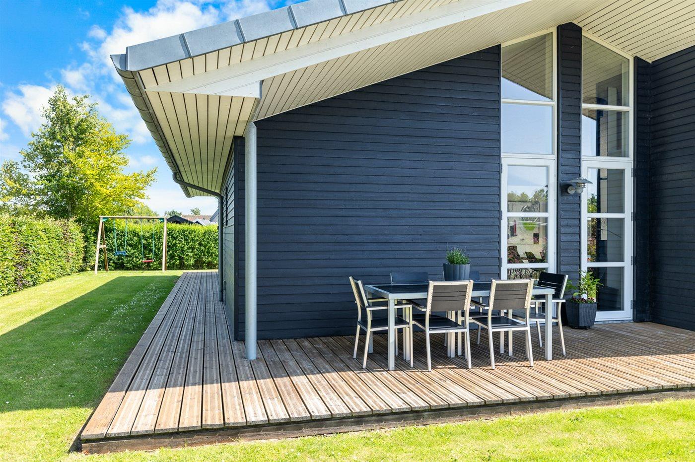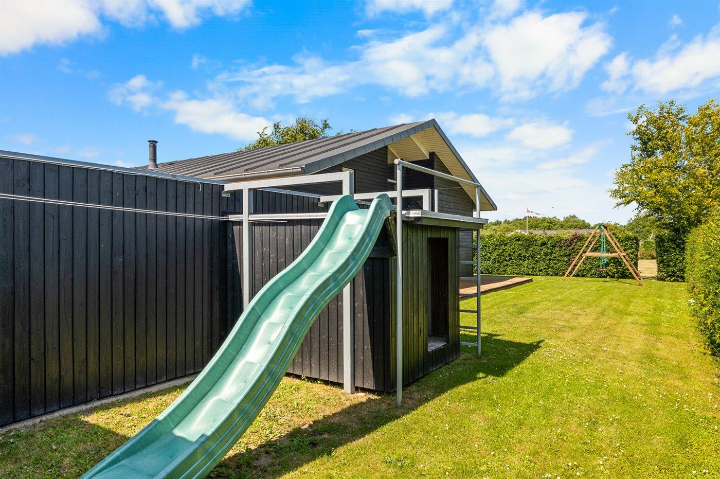 The holiday home is situated on a 1005 m² garden site. Situated 400 m from the sea. Nearest shop is 4600 m away. A terrace belong to the holiday home. Furthermore the house has a covered terrace. Swing. Sandbox. Playhouse. Slide. Barbecue at your disposal. Carport is at your disposal. Parking place by the holiday home.