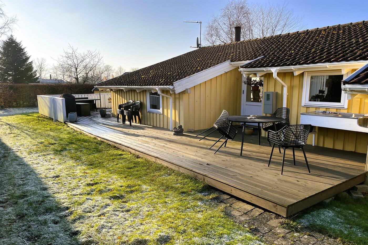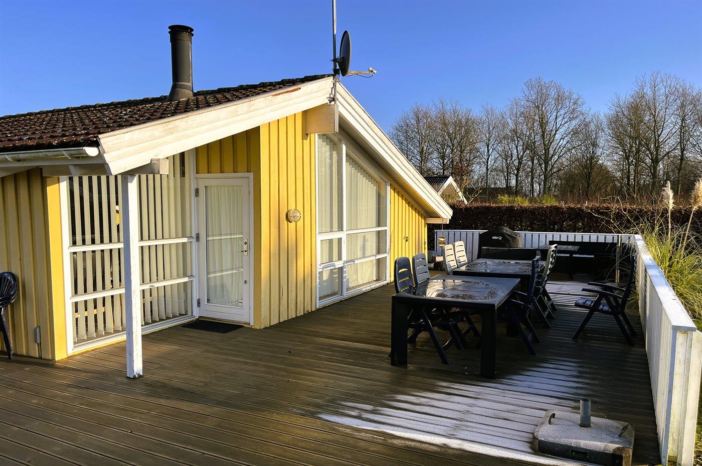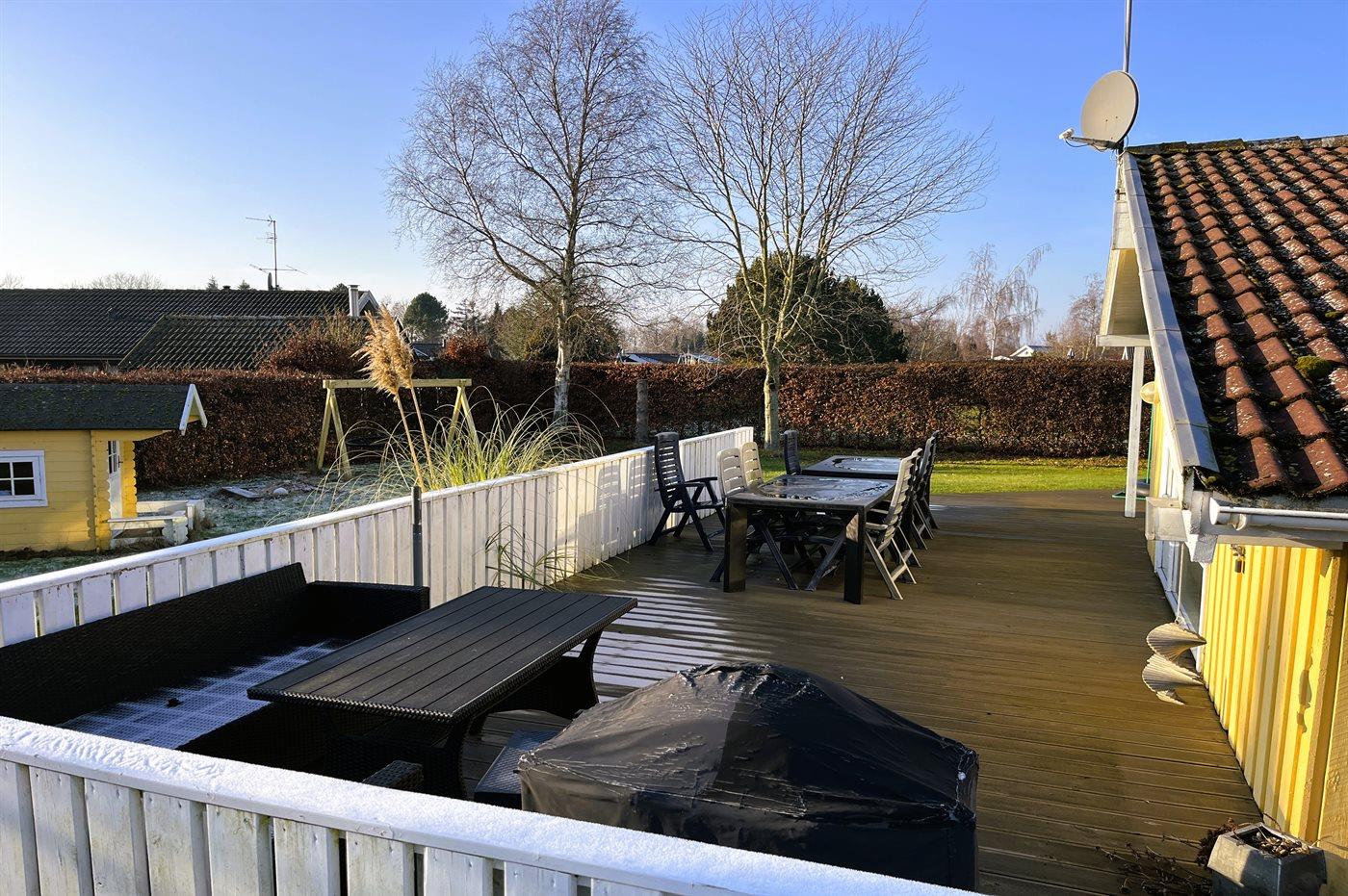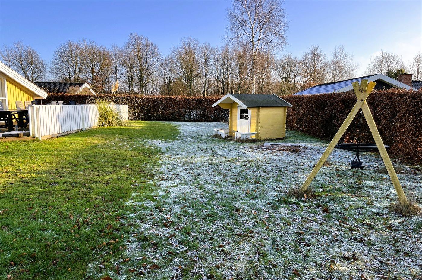 The holiday home is situated on a 1018 m² garden site. Situated 330 m from the sea. Nearest shop is 5200 m away. A terrace belong to the holiday home. You find a tool shed. Swing. Sandbox. Playhouse. Football goal. Situated 175 m from a playground. Barbecue at your disposal. Parking place by the holiday home.