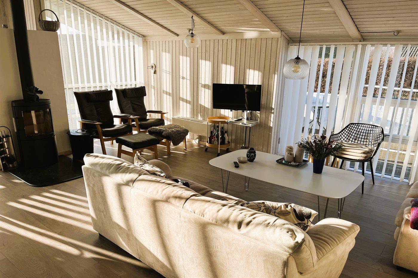Holiday home suitable for 10 persons as well as 1 child up to 3 years. The holiday home is 106 m² and is build in 1997. In 2025 the holiday home was renovated. You can bring along 2 pets. The holiday home is equipped with energy-friendly air-to-air heat pump. The holiday home has washing machine. Tumble dryer. Freezer capacity of 60 litres. Further more there is 1 wood-burning stove. For the youngest ones there is 1 high chair.