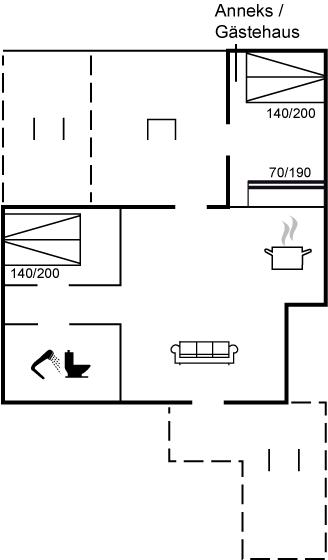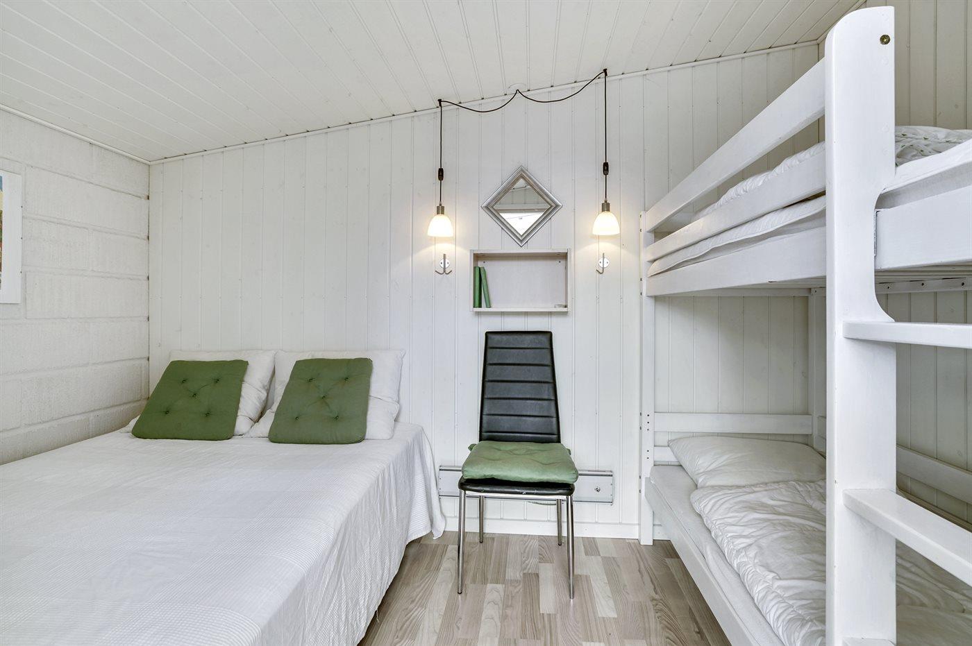 All together there are 2 bedrooms. The beds are divided on: 4 sleeping places in double beds. 2 sleeping places in bunk bed. 4 of these sleeping accommmodations are located in the annex.